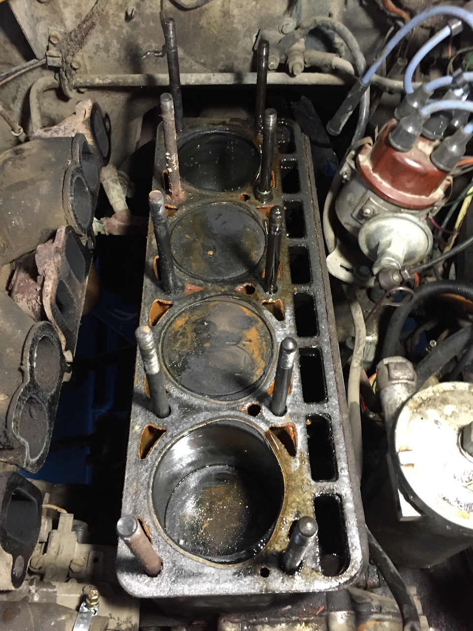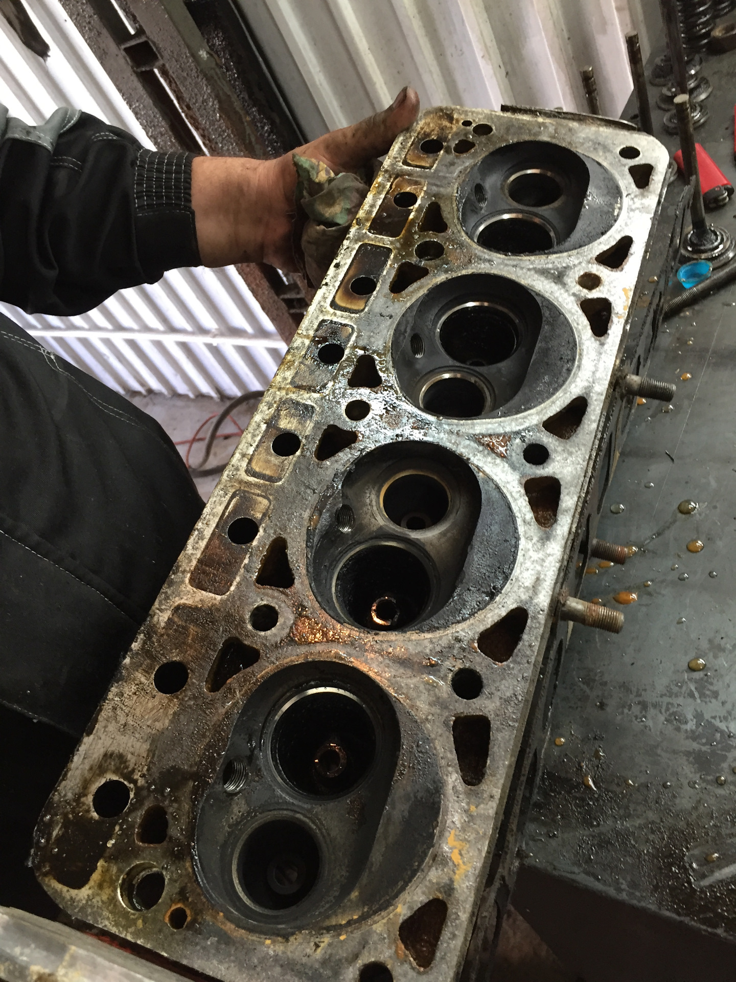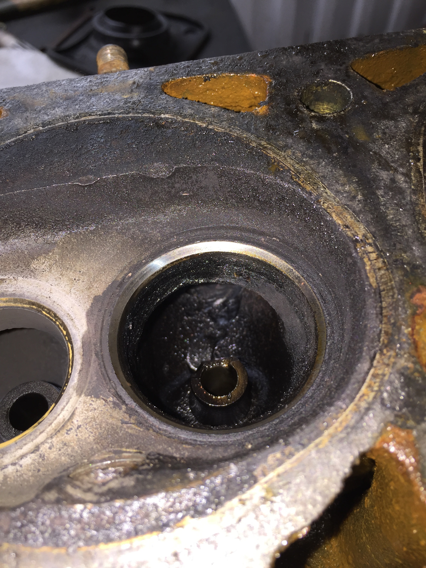 Данный мотор мотает, судя по всему уже не один круг одометра.Приехала данная машина изначально из Дрездена (Германия) .Что и какого качества туда лили-неизвестно.То что мотор ниразу не мылся-факт!Интервалы замены неизвестны, но просраные регламенты судя ПО НАГАРУ ВО ОЧИЮ, А НЕ ПО ФОТО, на лицо…Данный мотор перегреть (24д) практически не возможно, это не моё мнение, а статистика.Голова абсолютно ровная.Отклонений приварочной поверхности нет, что свойственно для перегрева.Ниодного признака указывающего на некорректную работу системы охлаждения при разборе, замерах, ремонте и диагностике неисправностей не выявлено.Даже прокладка ГБЦ родная стоит, так что могу смело сказать, что мотор мы вскрыли впервые…