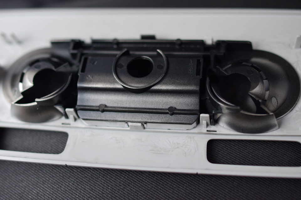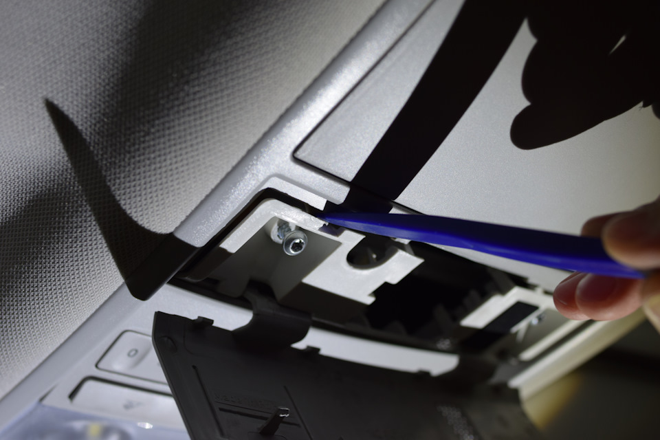 Аккуратно поддеваем с любой стороны пластиковую вставку, как показано на фото