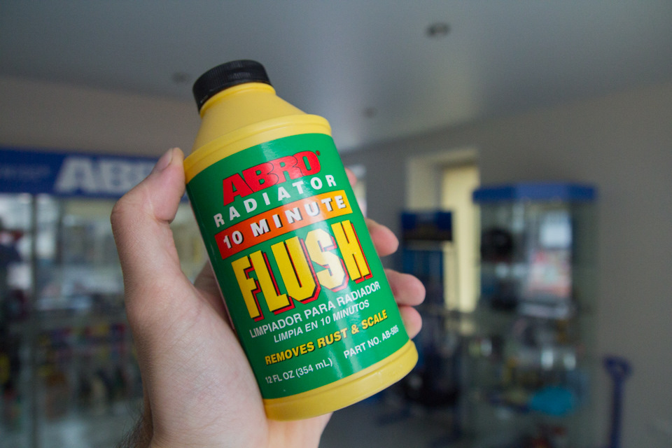 Для этого открываем крышку радиатора и заливаем Промывку радиатора ABRO. Заводим автомобиль и оставляем на 10-20 минут с включенной печкой. По истечении времени глушим автомобиль, даем ему остыть и сливаем антифриз вместе с промывкой. Промываем систему водой, пока вода не станет чистой.