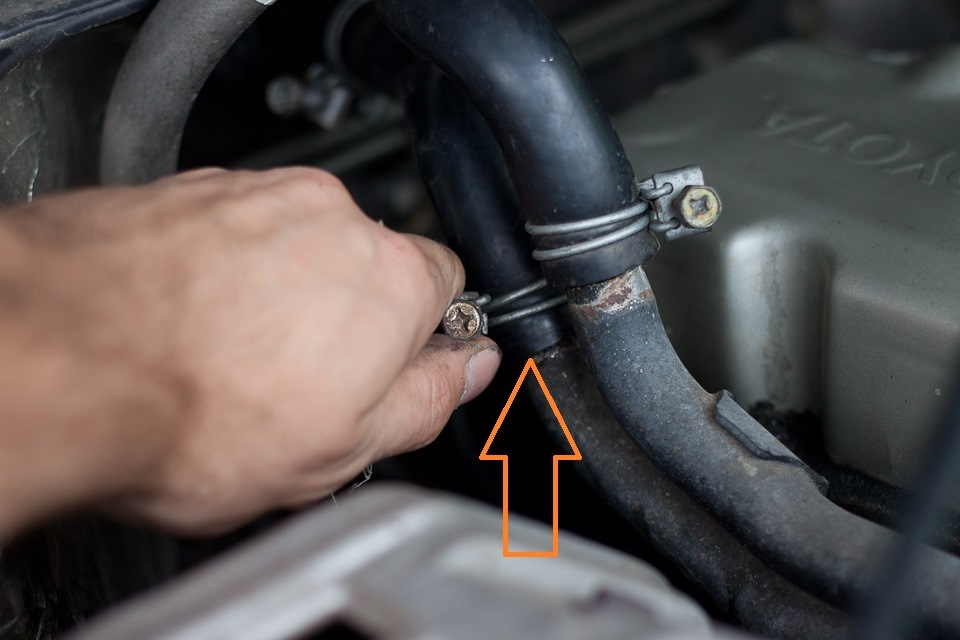 в) Заливаем антифриз, проминая шланг перед радиатором, выгоняя воздух из системы