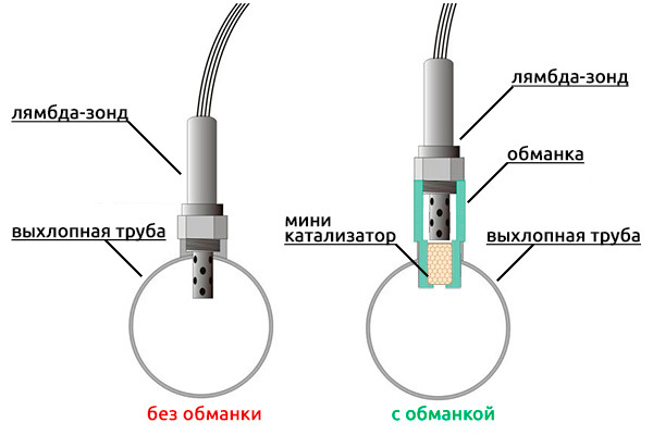 Обманка лямбда-зонда — это устройство, которое корректирует сигнал второго кислородного датчика автомобиля, тем самым «обманывая» ЭБУ о текущем состоянии катализатора. Она может быть механическая в виде металлической проставки или в виде электронного блока (эмулятора).