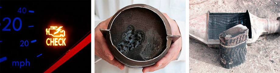 Главная причина — проблемы с катализатором. Он может рассыпаться, оплавиться, забиться либо просто перестать очищать выхлоп от остатков топлива и в этом случае второй лямбда-зонд выдаст ошибку «CHECK» о неэффективной работе катализатора. Последствиями такой ошибки как правило является аварийный режим работы автомобиля, а вместе с ним и увеличение расхода топлива, в некоторых случаях еще и отключение вспомогательных систем и ограничение оборотов двигателя.