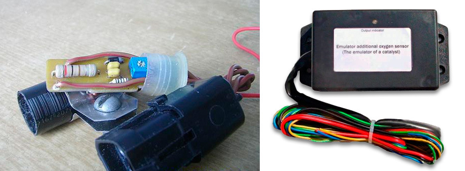 Второй способ обмануть лямбда-зонд — электронная обманка. Это может быть, как полноценный блок с микроконтроллером, который полностью заменяет датчик кислорода, так и схема из конденсатора и резистора припаянная в разрыв контактов родного датчика. Соответственно чем лучше будет такой эмулятор делать свою работу, тем сложнее его микросхема, а значит больше вероятность получить проблемы с электроникой как самого блока, так и совместимости с конкретной машиной.