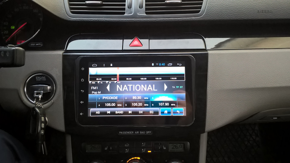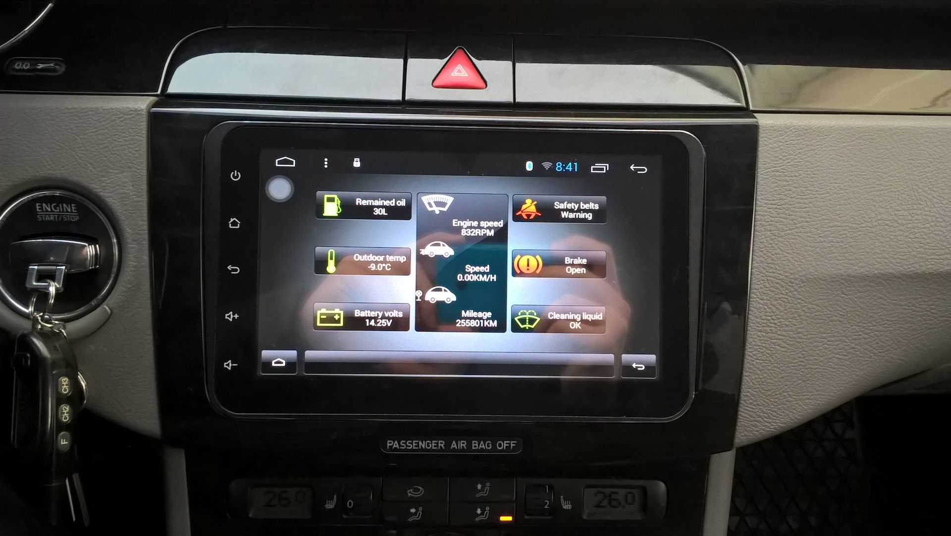У владельца данного автомобиля стоял штатный Kenwood DNX520VBT, который не отличался производительностью и функциональностью. RedPower 21004B8 для Volkswagen Passat полностью удовлетворил требования. Экран 8 дюймов, магнитола полностью сенсорная и без привода для чтения дисков, имеется два USB входа. Навигация Navitel Украина и IGO. Камера уже стояла на автомобили так что ее подключили и активировали на магнитоле динамическую разметку (разметка включается при движении задним ходом и изменяет угол поворота вместе с оборотами руля). Так же магнитола выводит показатели о количестве топлива в баке в литрах, заряд аккумулятора и др.