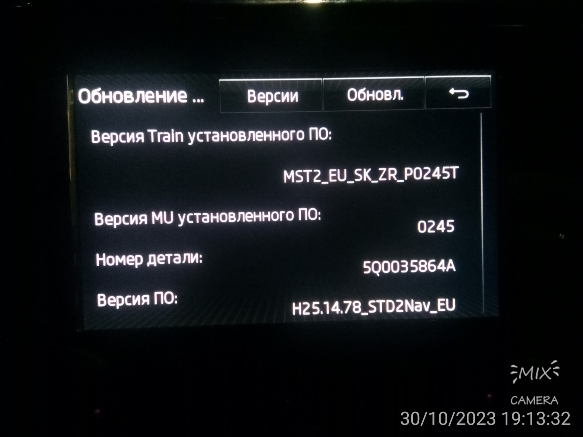 Йети 2016 г.в. с Bolero MIB2 — 5L0035200B (дата выпуска Болеро 13 неделя, 2016 года). SW 0245, HW H22.