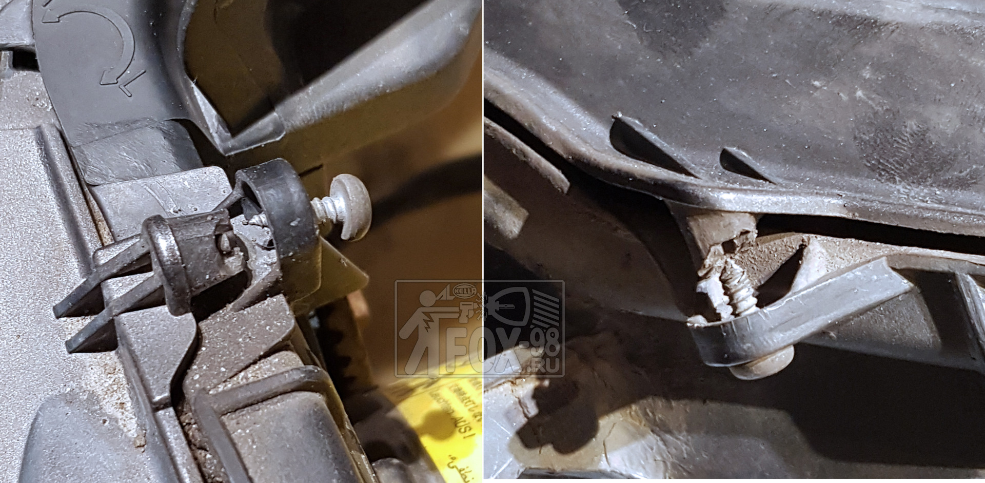 О причинах запотевания фар в отдельной статье по ссылке. В данном случае причина запотевания — разгерметизация фары. Это происходит из-за механических повреждений креплений "стекла" (внешнего прозрачного плафона). Стекло уже не может плотно прижиматься и по этой причине образуются протечки.
