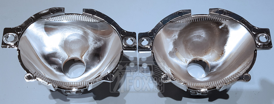 3. Применение неоригинальных ламп. В этом случае процессы из первых двух пунктов проходят в ускоренном режиме, при этом деградация идёт сразу по всей площади отражателя