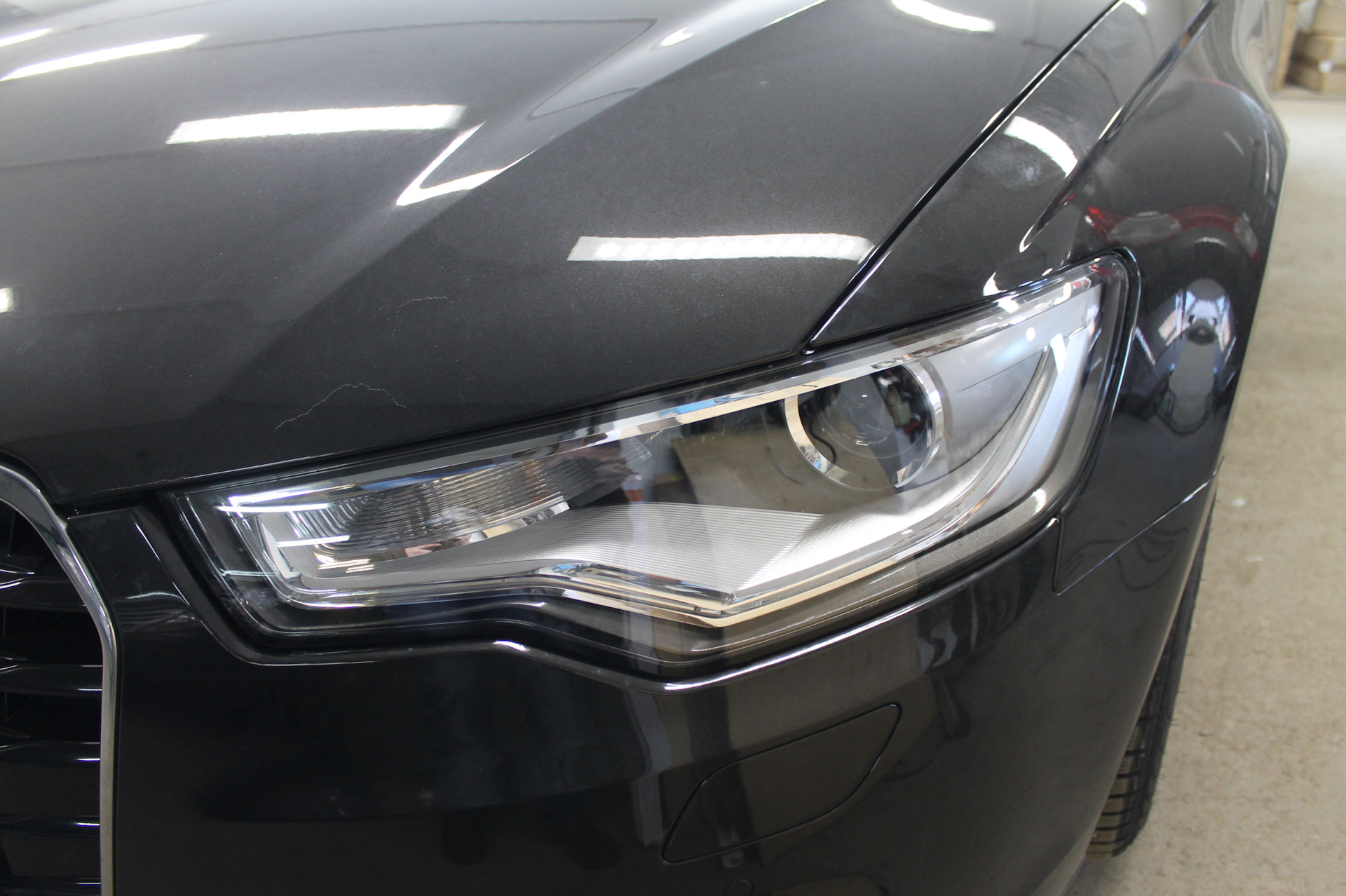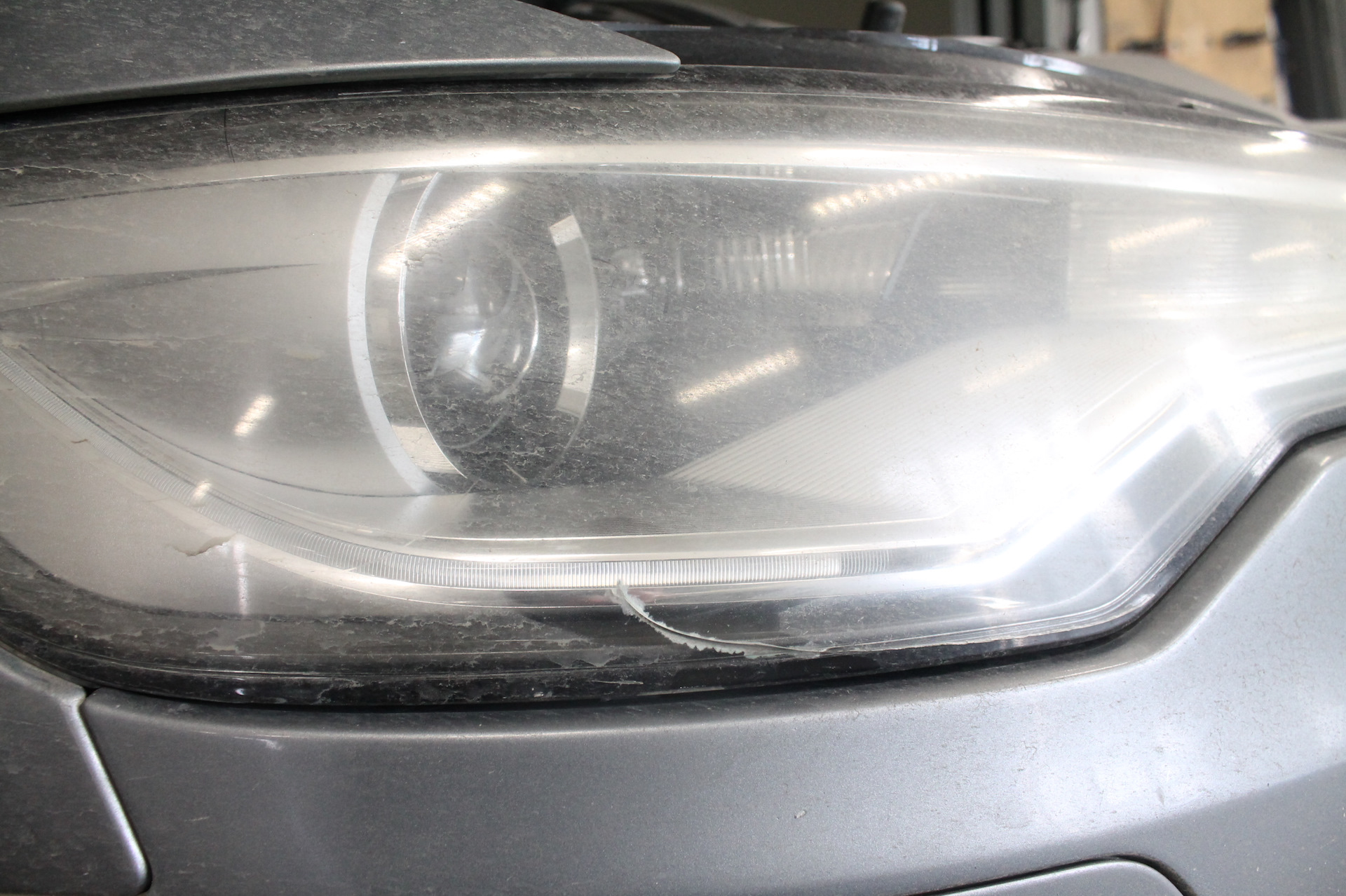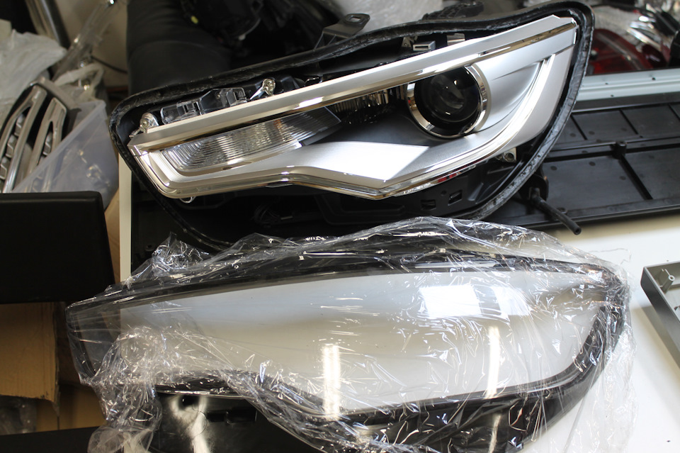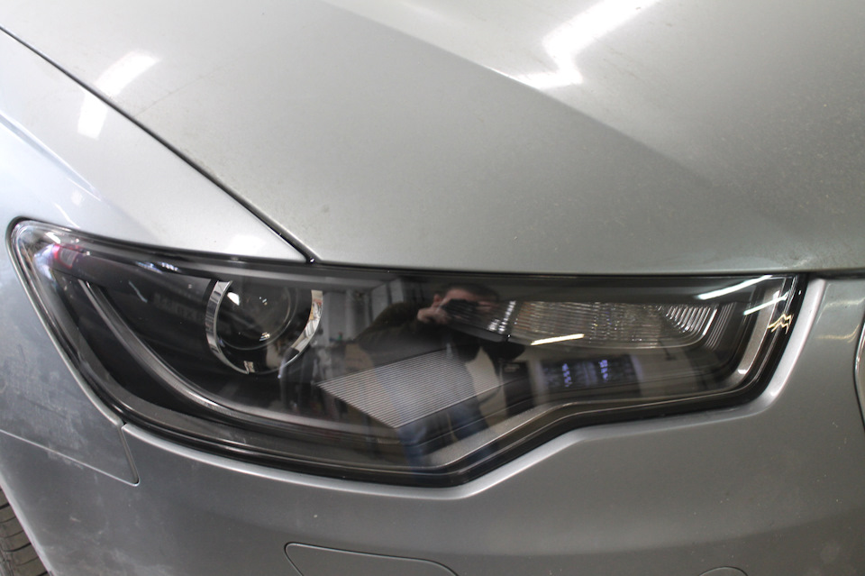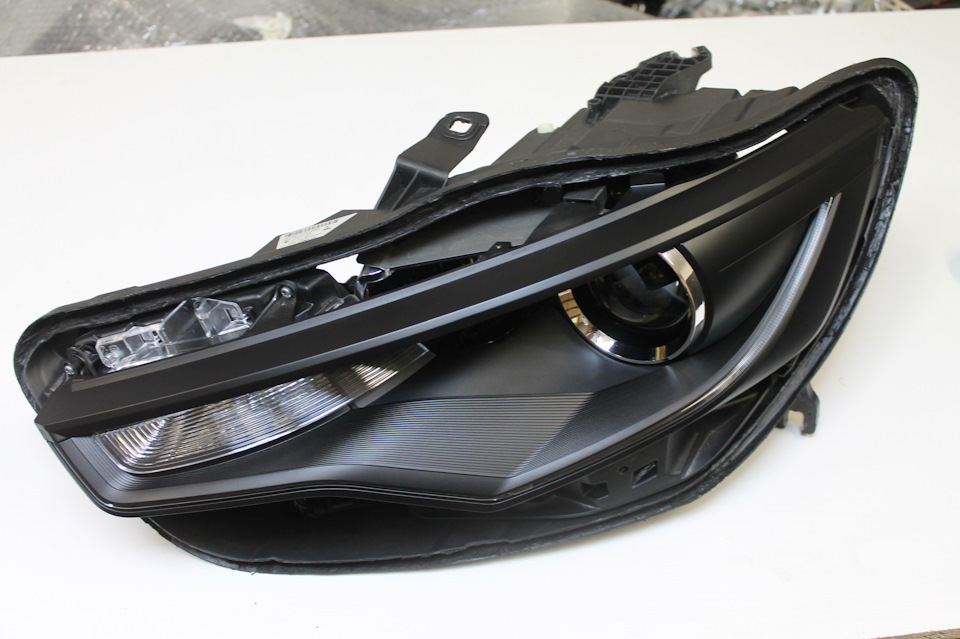 И так на серой AUDI мы не просто меняем стёкла фар а красим их изнутри в чёрный мат. Но не всё полностью а частично. Иначе будет слишком чёрным да и отражатель боковой подсветки по любому будет выделятся одиноким пятном.