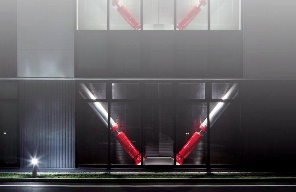 Компания KYB выпускает 23 вида сейсмических демпферов, которые помогают обеспечивать безопасность небоскрёбов, административных и жилых зданий по всей Японии, а также за ее пределами. Всякий раз они спасают жизни.