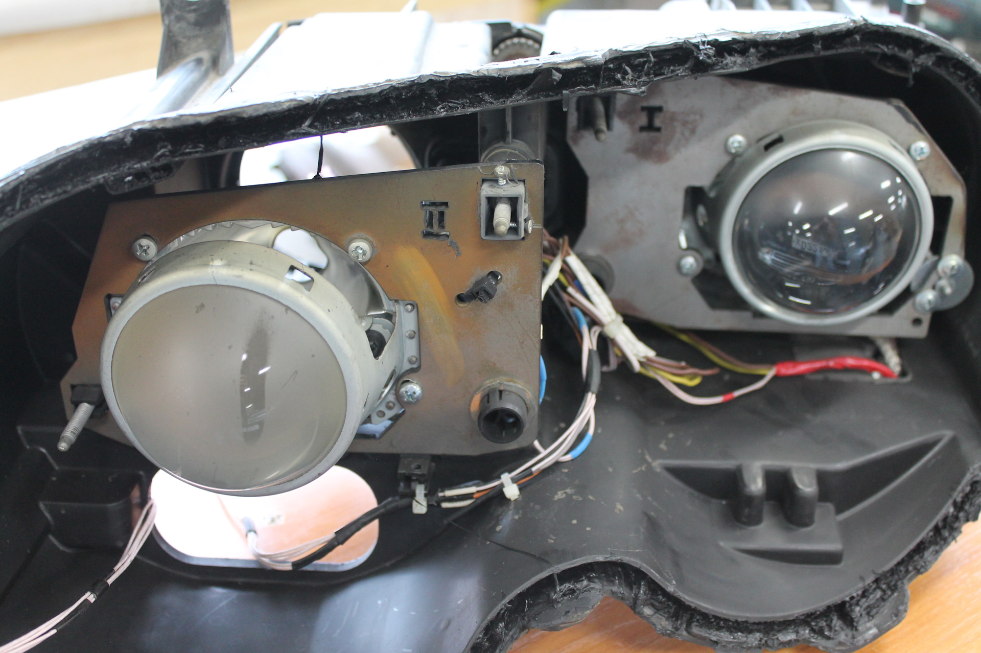 Кстати вот скорее всего из-за чего потели фары после данной переделки — высоковольтные провода проходили в фару . Но вот герметичности сделано не было.