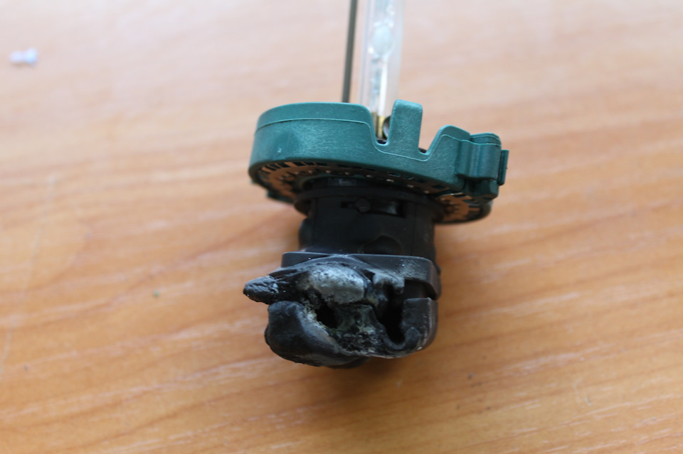 На фото ниже классический пример почему не надо использовать китайские дешёвые ксеноновые лампы тем более с китайским разъёмом на лампы. Это соединение привело к банальному мини-пожару внутри фары.