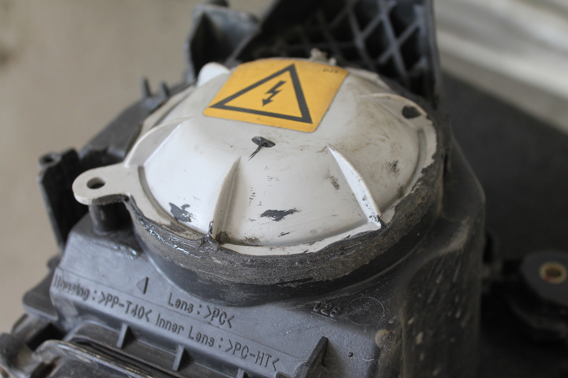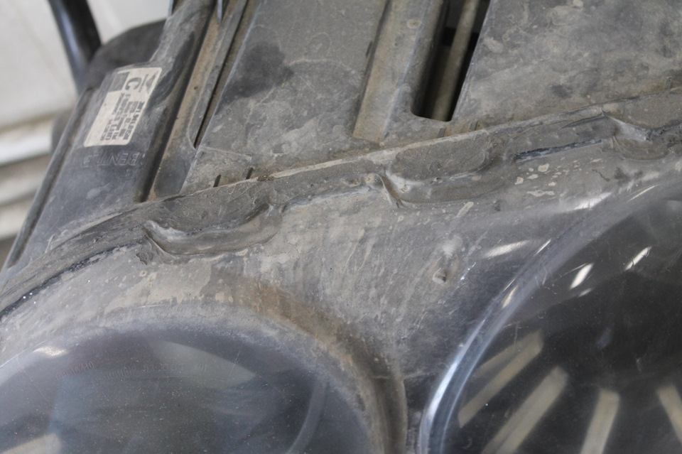 Вот мы сняли фару и что мы увидели пока снаружи. Фара собрана на бутиловой герметике и по сути это обычная японская фара от производителя KOITO. И не является супер сложной — но ребята постарались и для борьбы с запотеванием сотворили вот *это* качество . Просто промазали силиконовым герметиком поверх бутилового. Смотрите фото ниже