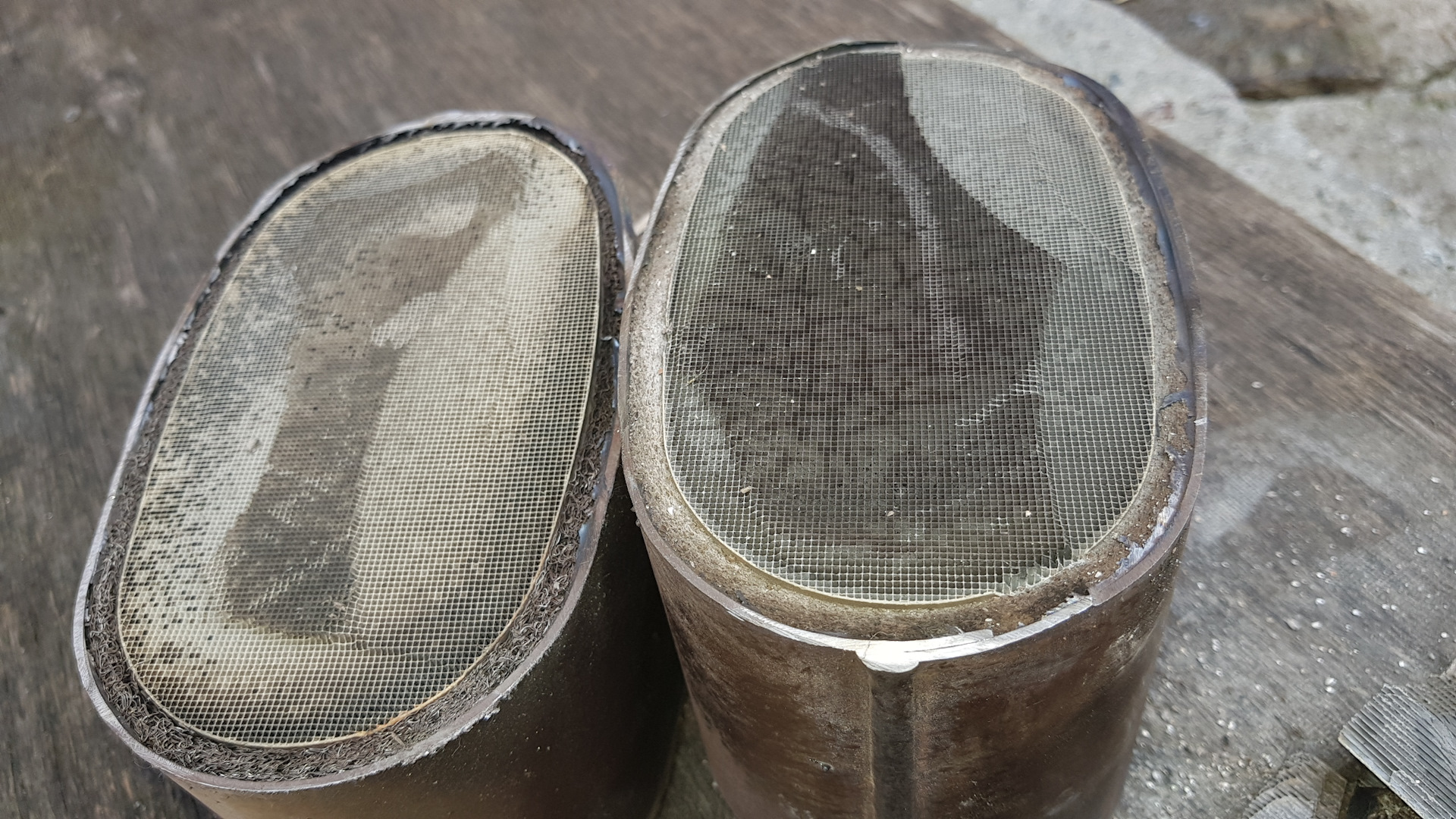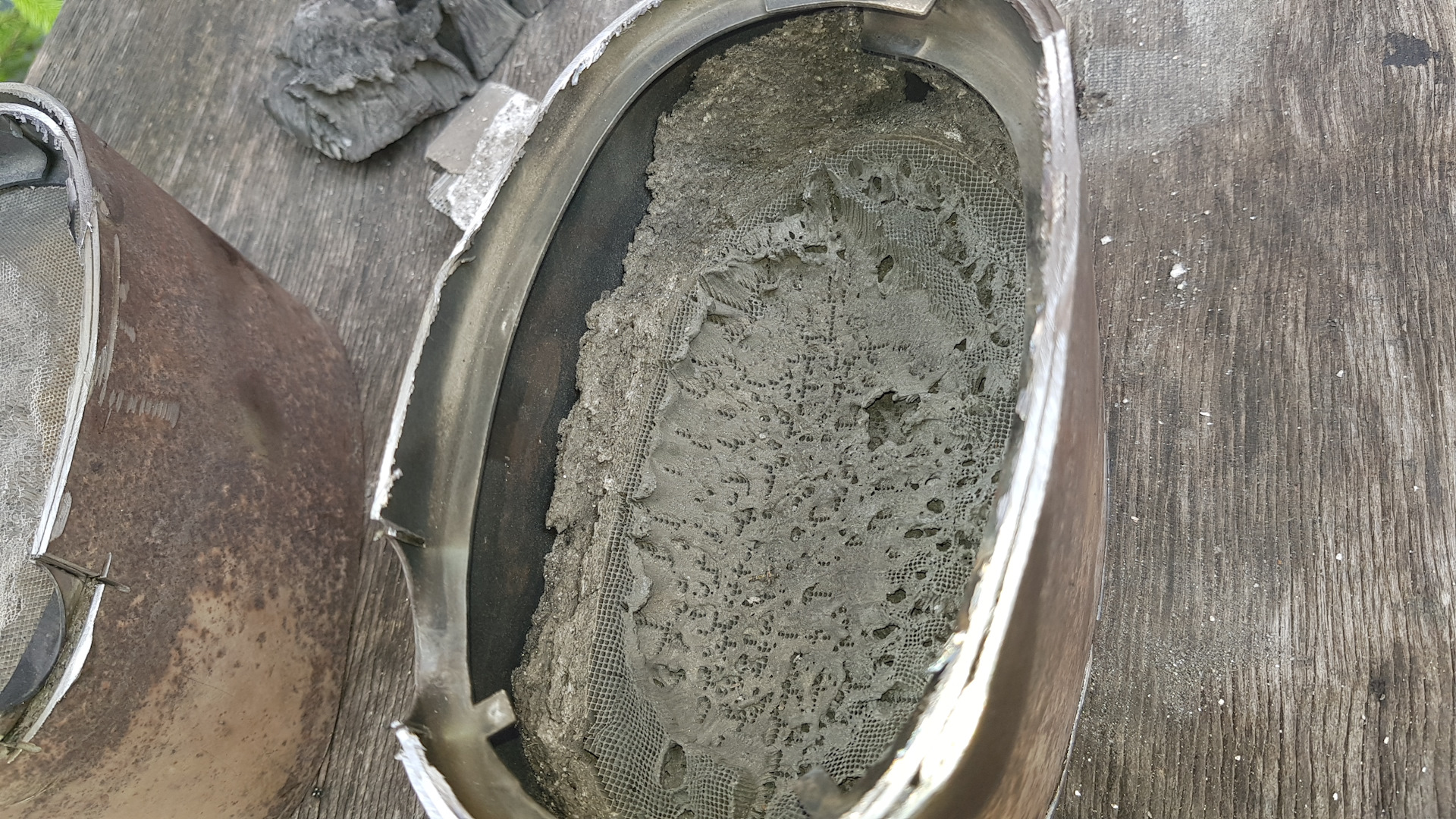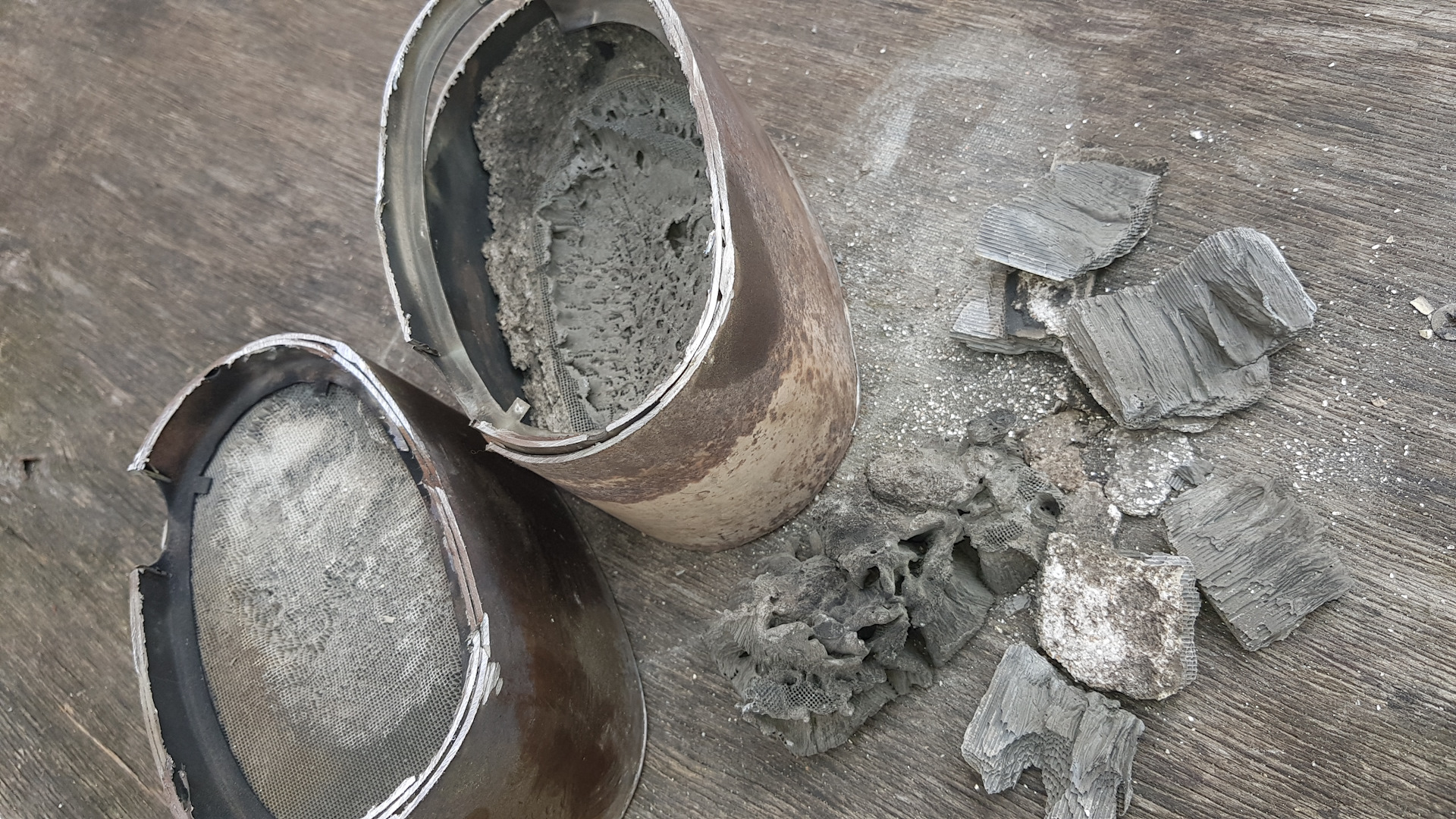Заменили катализатор, снятый — распилили пополам для интереса рассмотреть :)