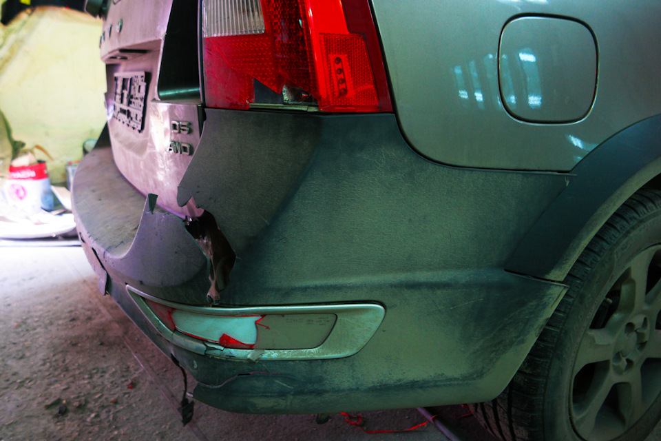Про кузовной ремонт этого автомобиля мы рассказывали примерно пару месяцев назад. В задний бампер Вольво хс70 прилетел КИА Оптима. Летел кореец, судя по всему, хорошо, так как сам оказался списан в тотал. У шведа повреждён задний бампер, крышка багажника, фонари, задняя балка, ниша запаски и глушитель.
