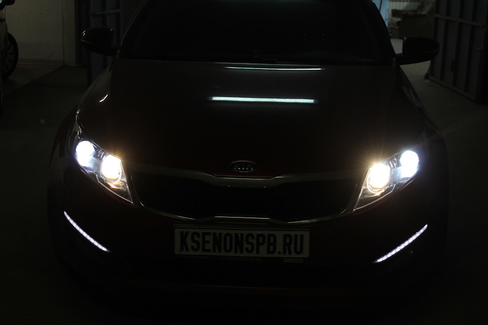 Автомобиль KIA OPTIMA на линзованной но галогеновой оптике обладает жутко плохим светом.