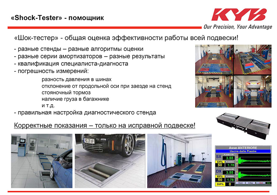 Специальное оборудование. В авторизованных СТО всегда есть то, что нужно для диагностики и ремонта подвески. Оборудование соответствует строгим требованиям KYB.