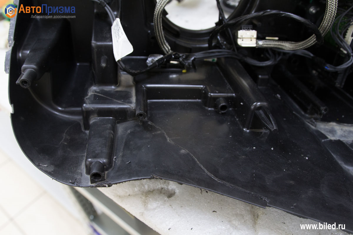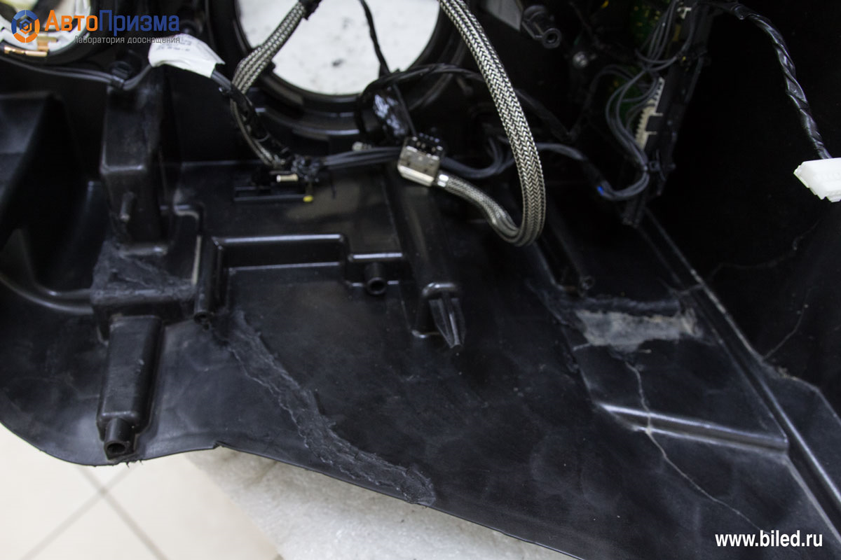 Положили новый герметик. Владелец сэкономил приличную сумму, т.к. новая фара стоит порядка 90 тыс. руб. а те что предлагаются на разборках 20 — 40 тыс. руб в таком же состоянии что их надо так же ремонтировать.