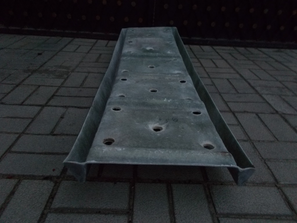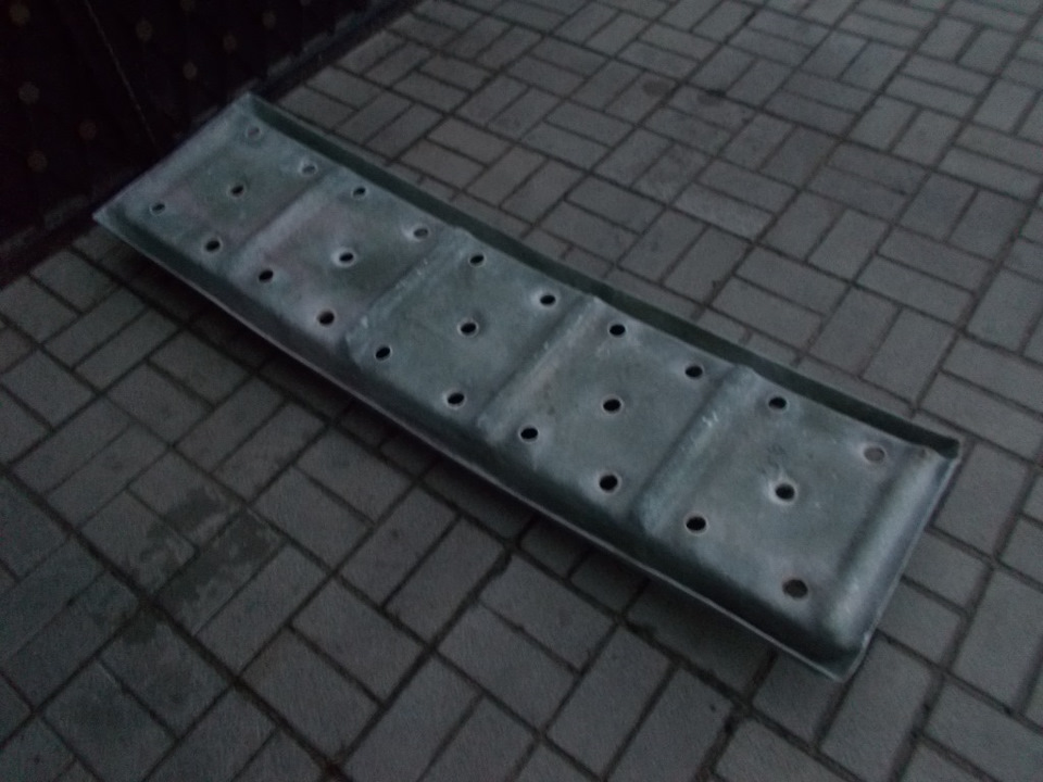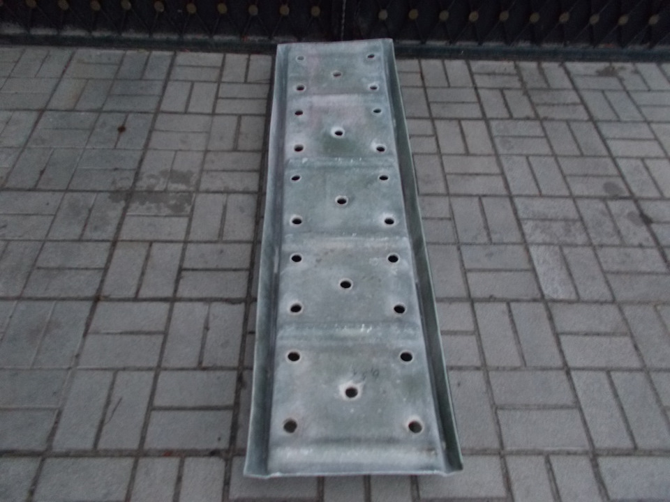 нам не составит большого труда просверлить 4 отверстия…и закрепить полоску дюральки шириной в 40 мм и длинной 330 мм…так чтоб внутренняя и лицевая часть кромки трака была защищена металлом…тем самым исключить стачивание кромки и появления мохров!
