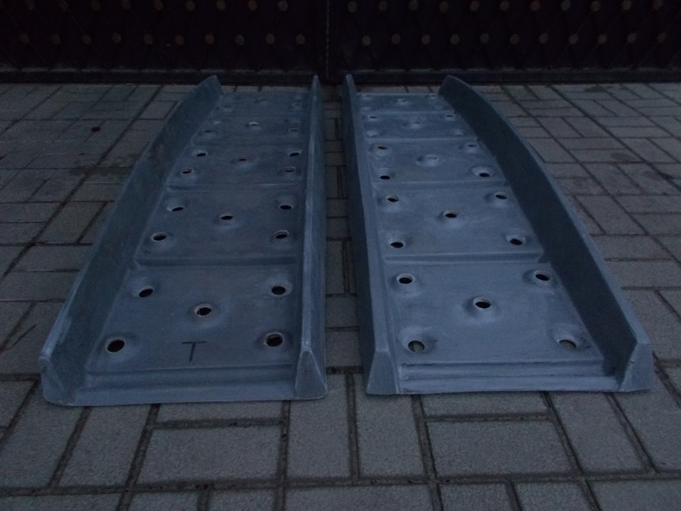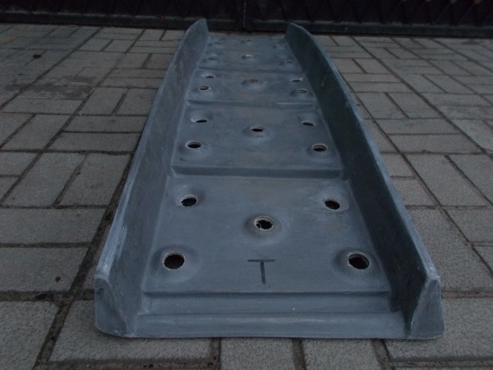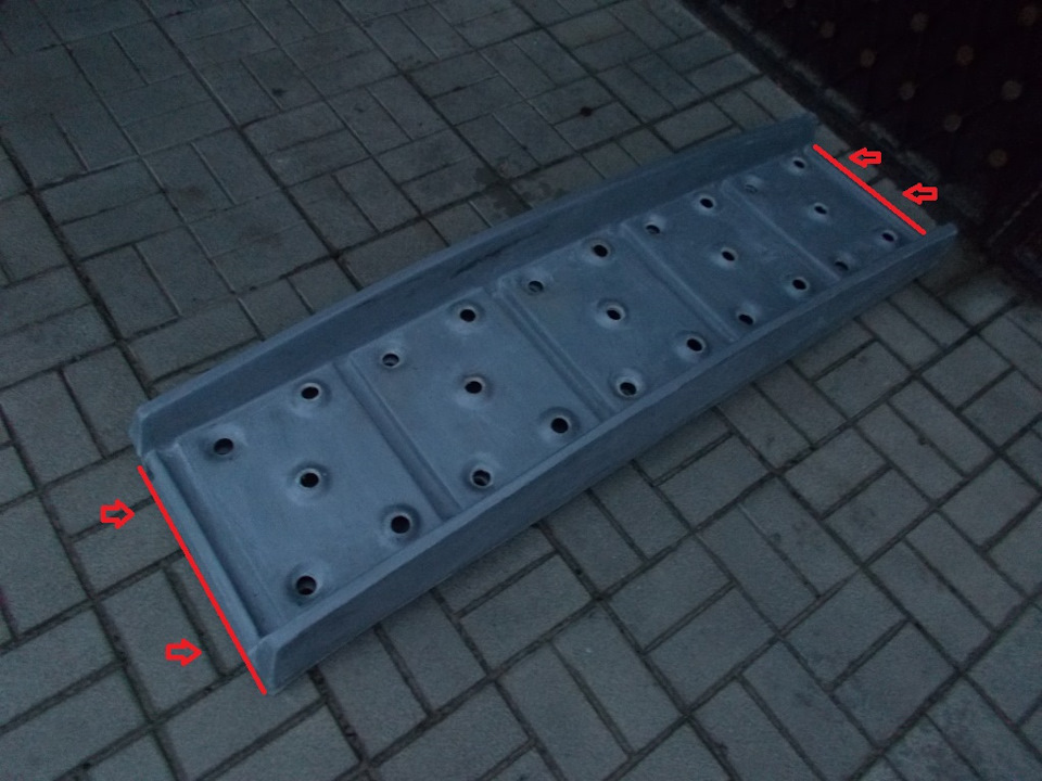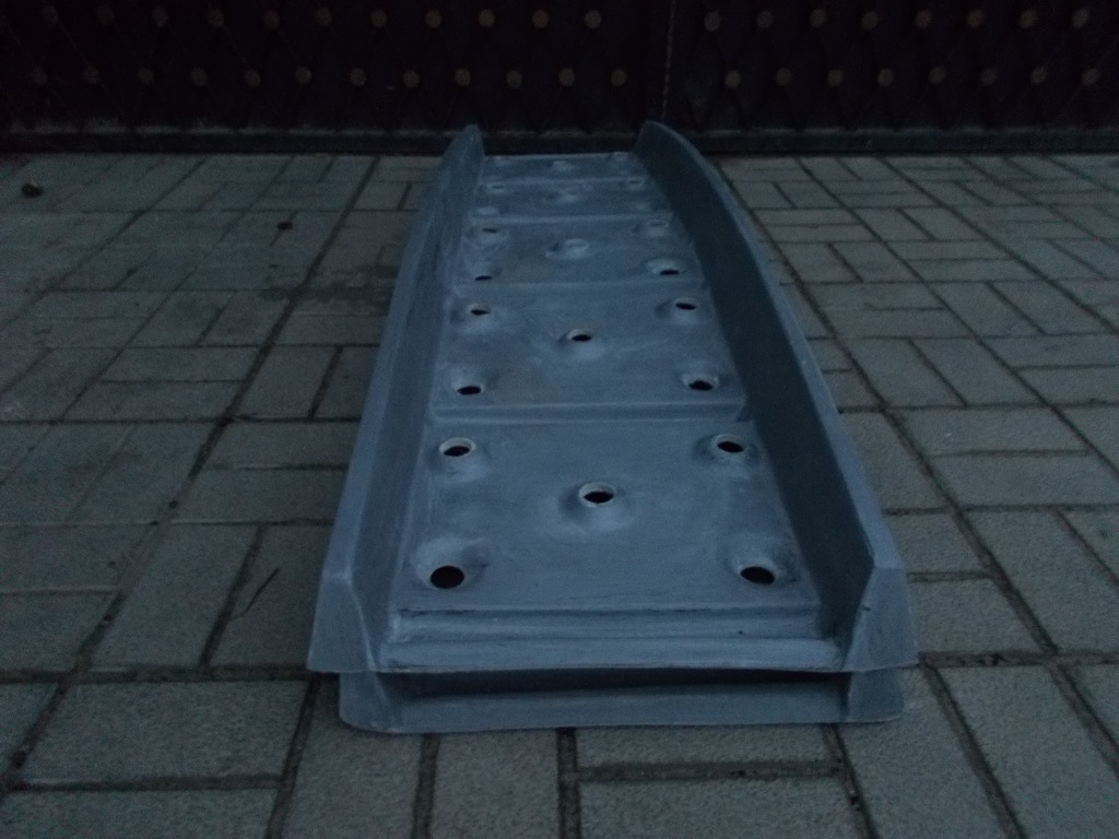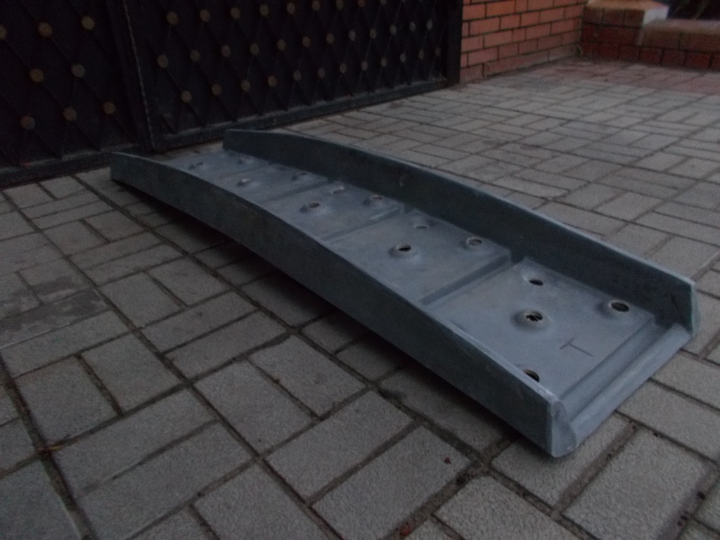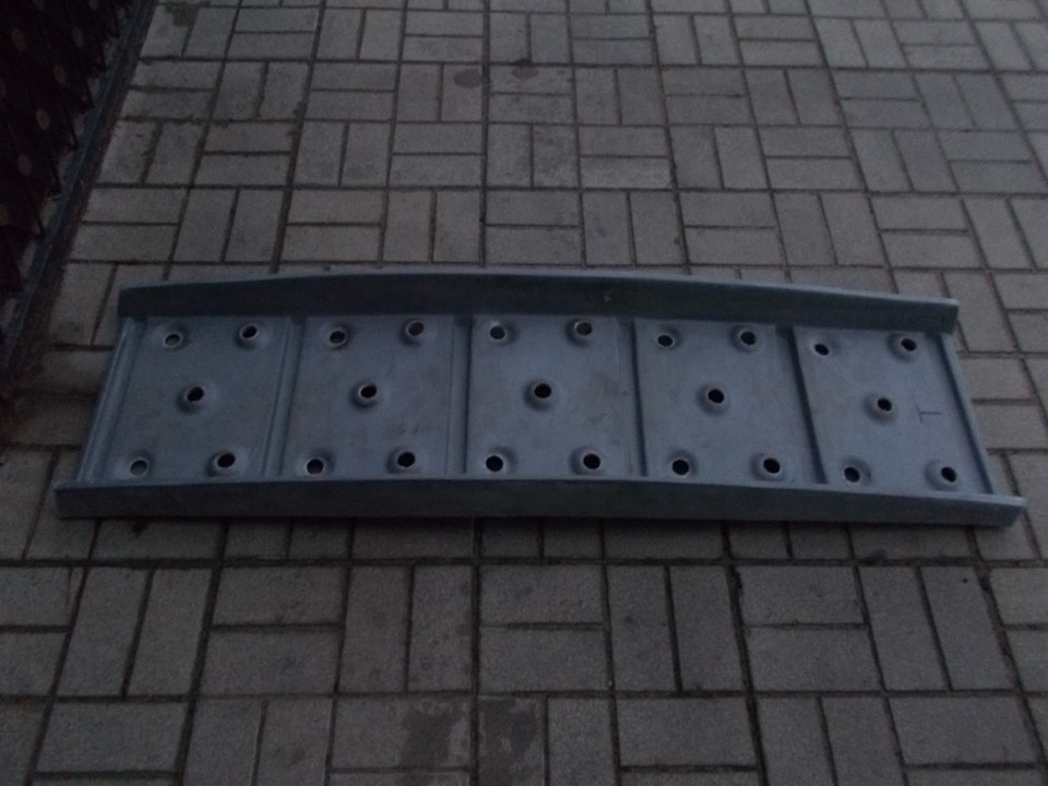 Стеклопластиковый сэнд-трак вес 7,5 кг (тяжелый) — подходит для работы тяжелым автомобилям в качестве мостика, а так же для работы в грязи. Общая "горбатая" геометрия не позволит сэнд-траку встать в распор между днищем автомобиля и поверхностью земли после проезда по сэнд-траку первого колеса автомобиля.