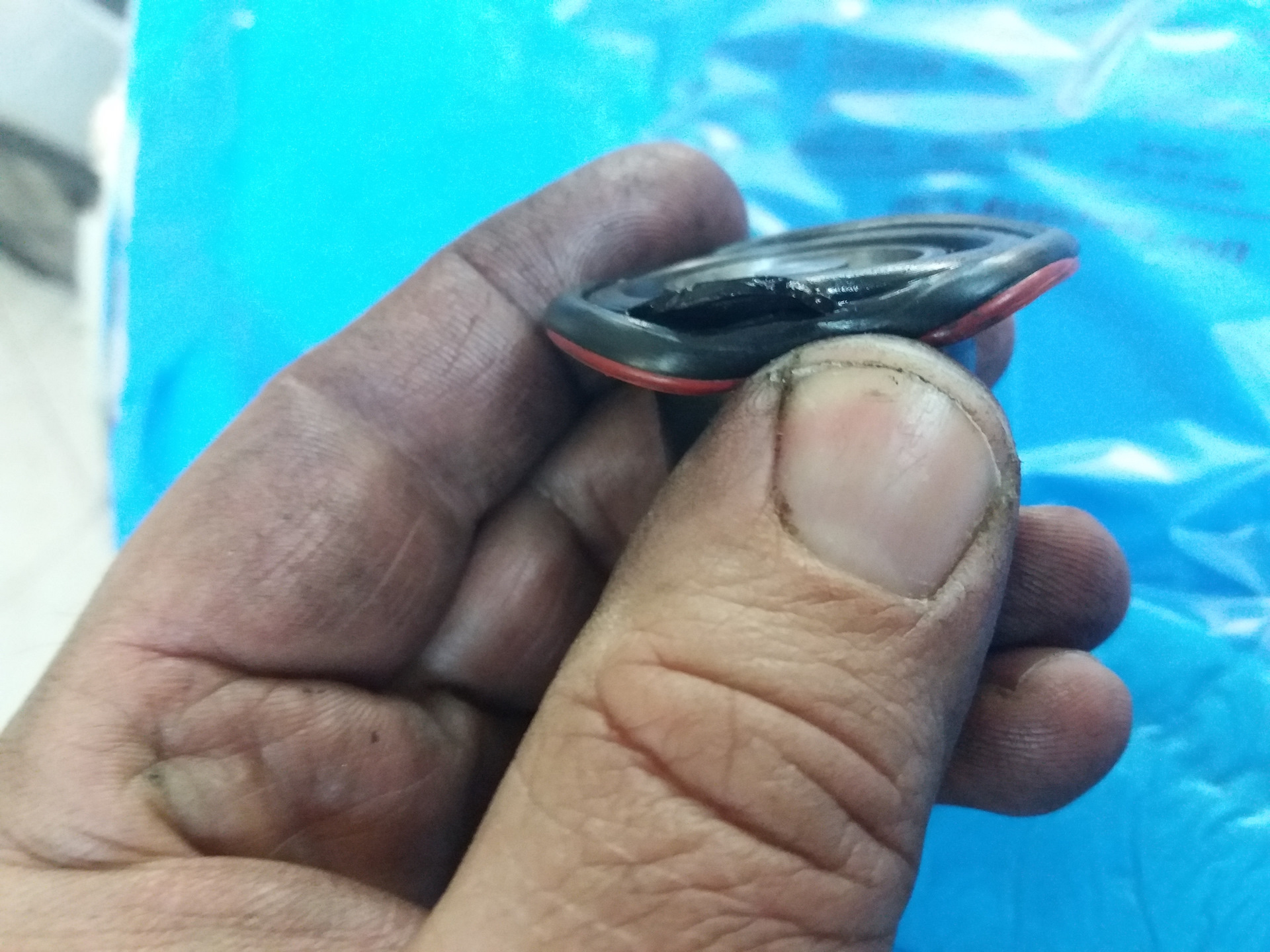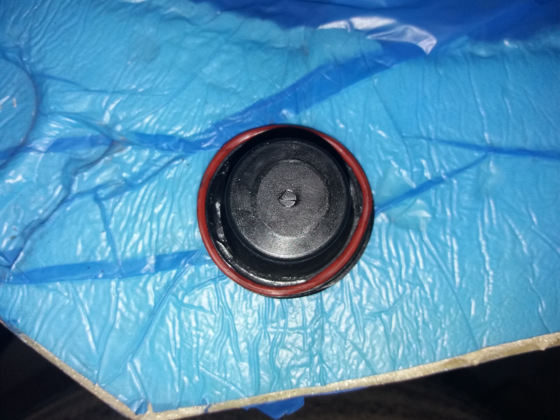 Ищем дальше и обнаруживаем проблему. Кто-то уже снимал мембрану на впускном коллекторе и мало того, что зачем-то поставили лишнюю прокладку (оранжевое кольцо), так ещё и поставили как-то не совсем удачно.