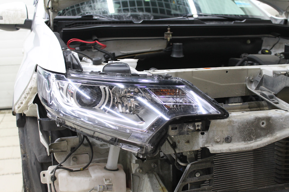 После того как убедились что всё выставили правильно снова приехали к нам на *базу* и окончательно собрали фары.