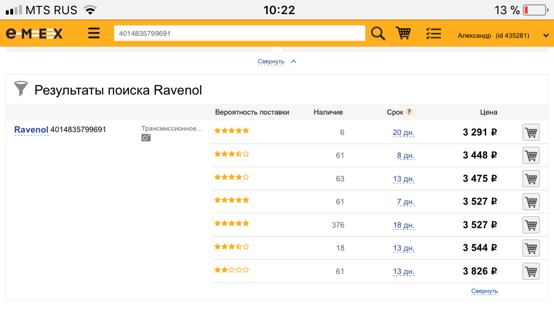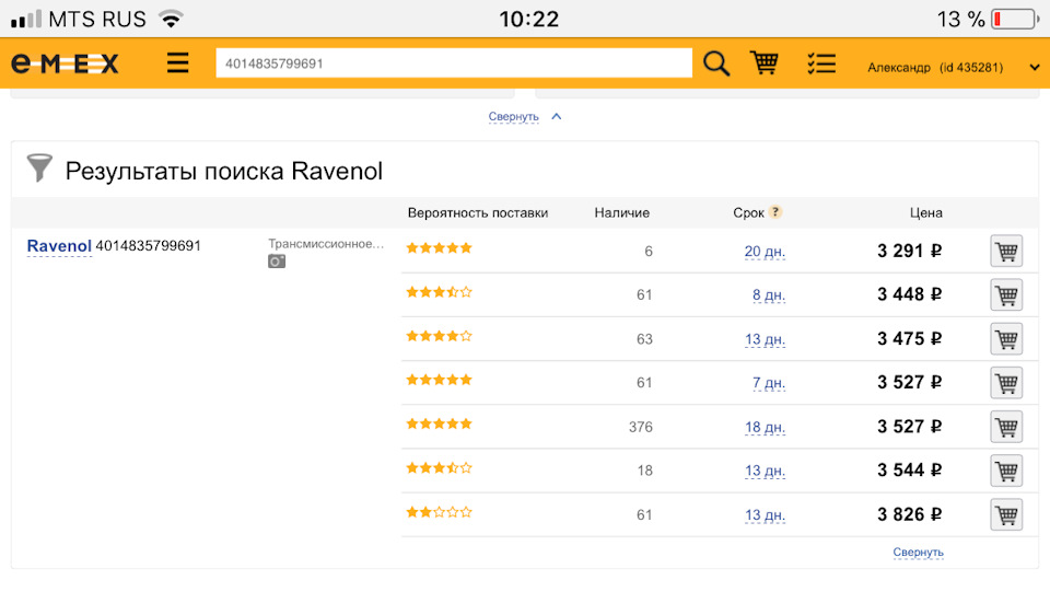 Скидка от рекомендованных розничных цен на официальном сайте www.ravenol.su Заходите на страницу продукта. Смотрите цены и сравниваете.