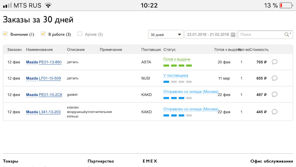 Эмекс мутный какойто.Там срок поставки акционного масла стоит 11 дней а в Иснексте 2 дня и завтра я его уже забираю судя по трекингу покупки
