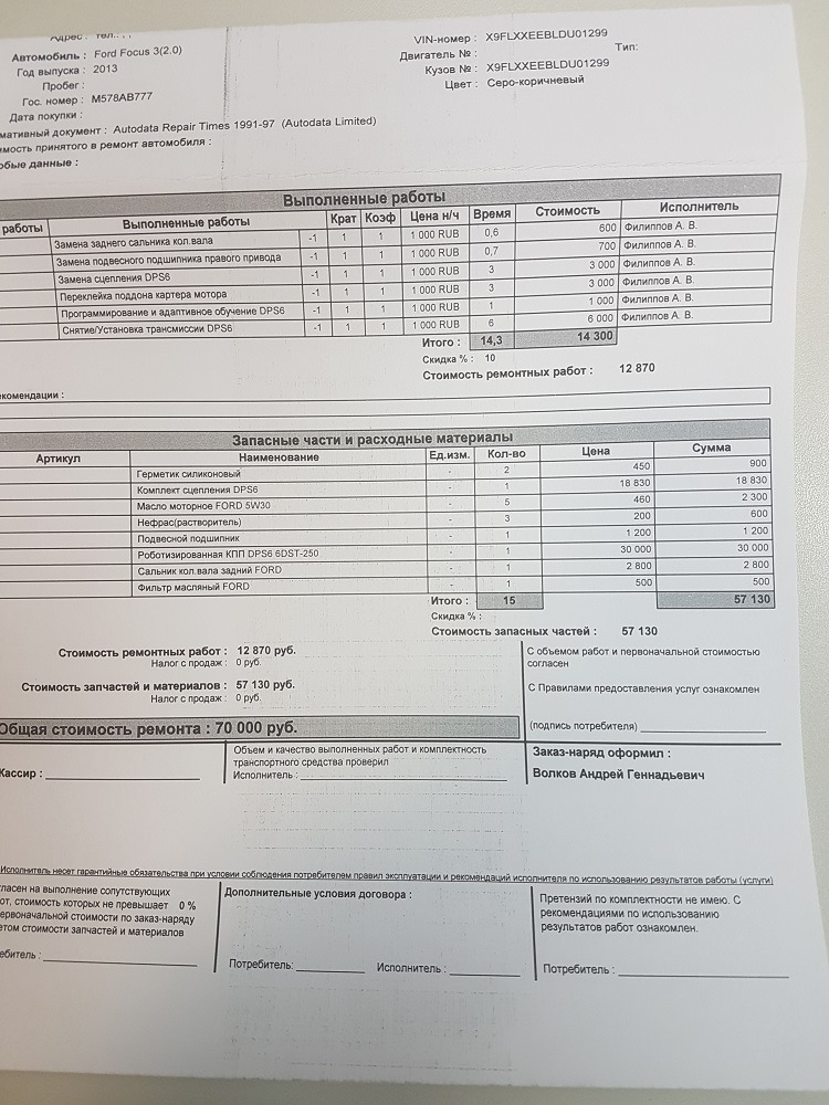 Хотелось бы увидеть такой же заказ наряд по коробке 6dct450