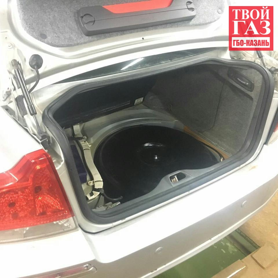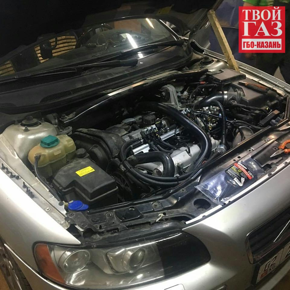 Установка газобаллонного оборудования на Volvo S60, двигатель 6-цилиндровый, рядный, объем 2,5л (210 л.с.). Установлено ГБО 4-го поколения DIGITRONIC IQ-6 тороидальный баллон 53 л расположен на месте запасного колеса, заправочное устройство выведено в бампер.