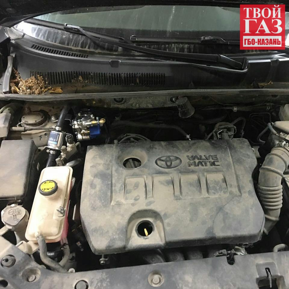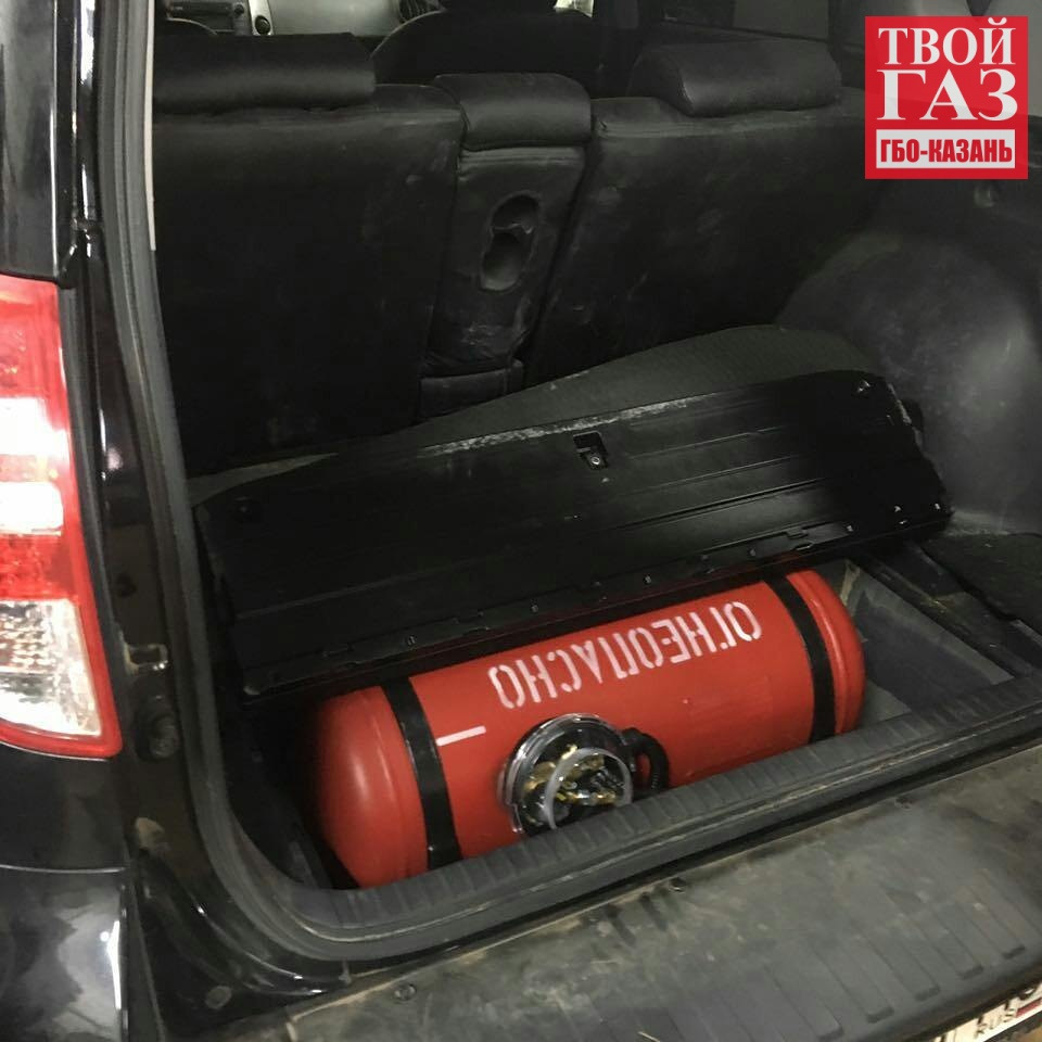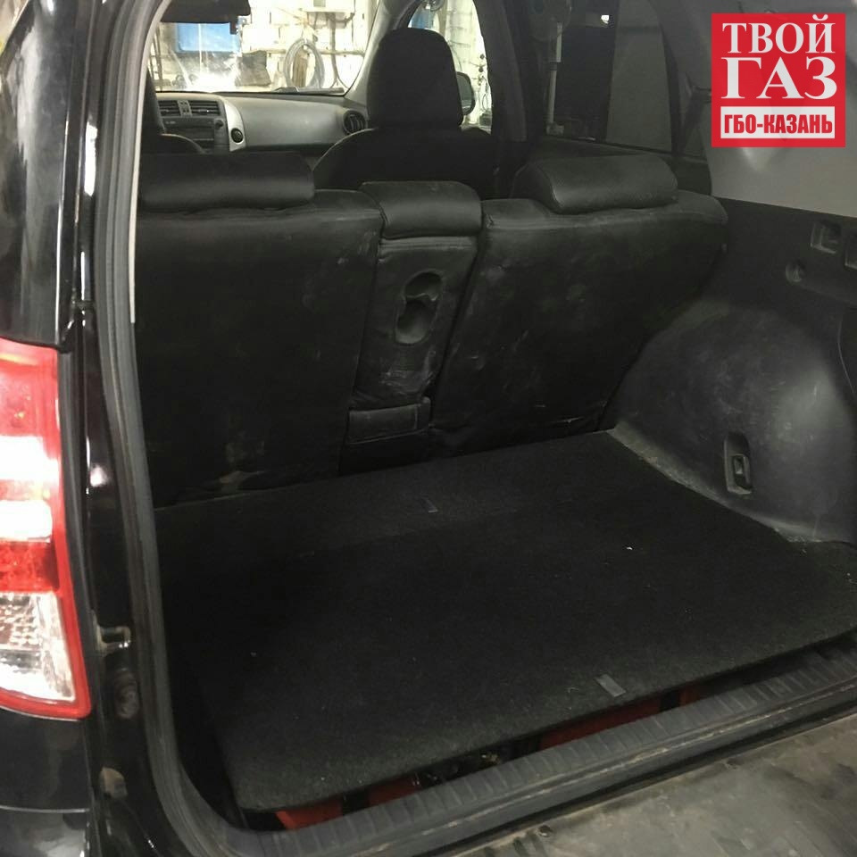 Установка газобаллонного оборудования на Toyota RAV 4 III, двигатель 4-цилиндровый, рядный, атмосферный, объем 2.0л (148 л.с.). Установлено ГБО 4-го поколения DIGITRONIC MAXI-2, цилиндрический баллон на 50 литров расположен в нише багажника.