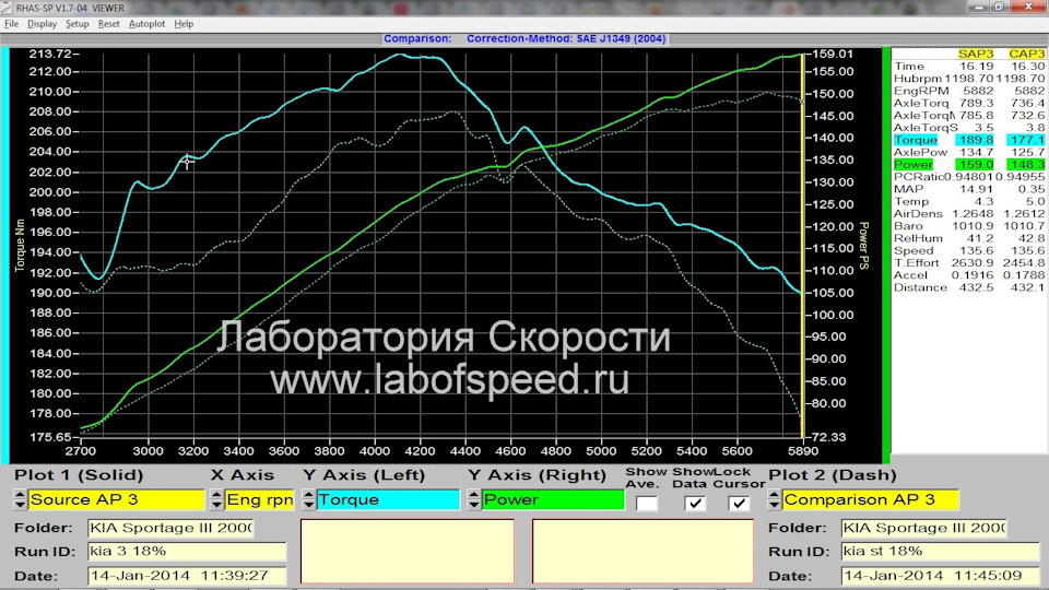 При стандартных для полного привода + АКПП коэффициентах потерь в трансмиссии 18%, с тем же режимом коррекции приведенной мощности по SAE J1394 (2004) автомобиль показал на заводской программе 150 л.с. в максимуме.