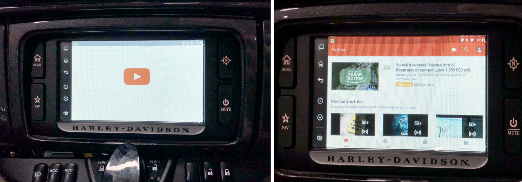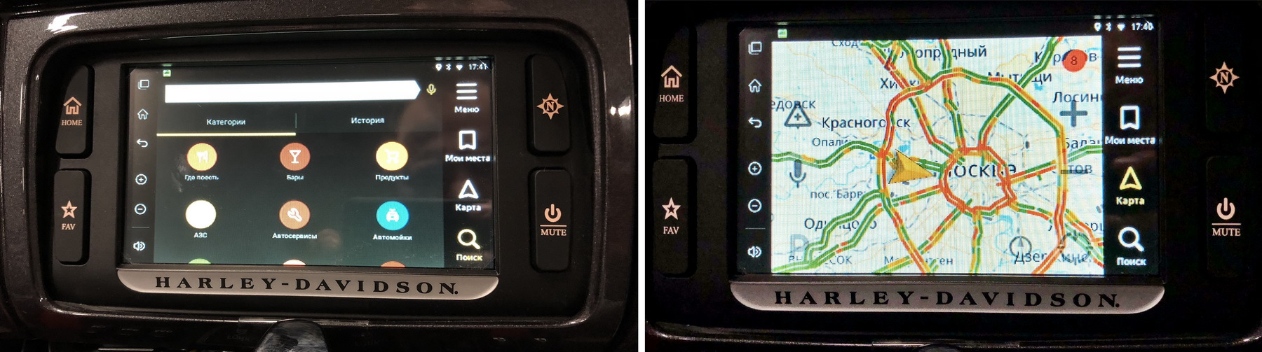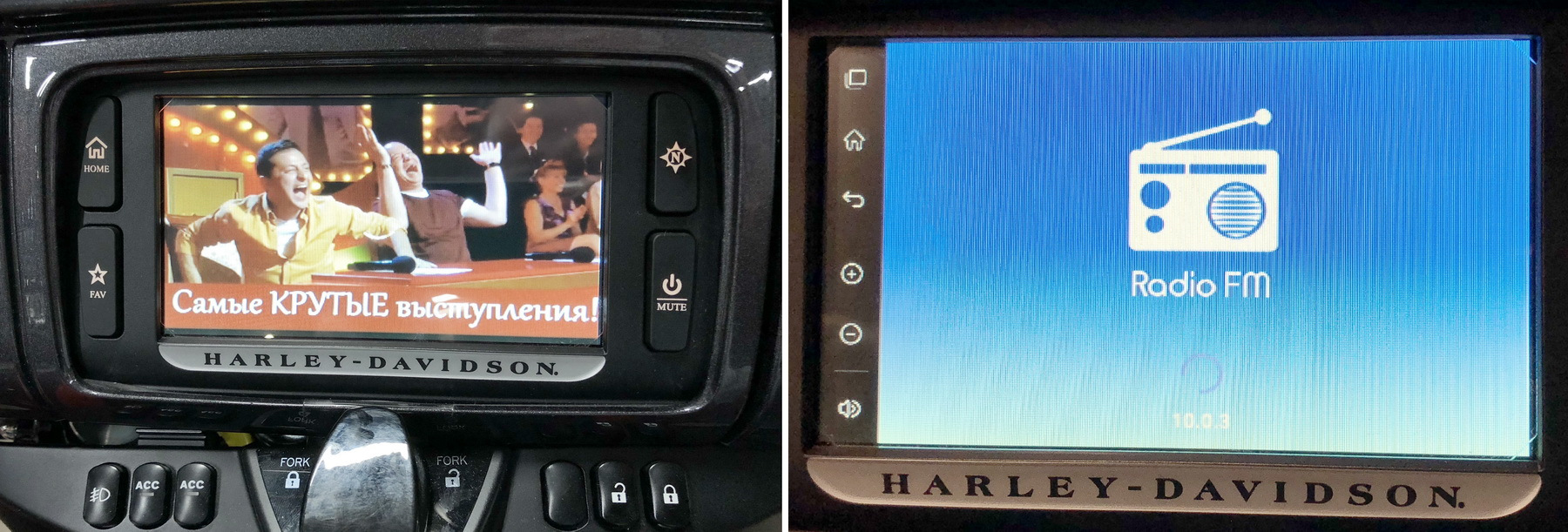 Совсем недавно появился топовый мотоцикл Harley Davidson CVO Street Glide и сразу же от нескольки владельцев, хорошо знакомых с нашими автомобильнымим наработками, поступили заявки на доработку штатных цветных монитором с целью установки современных навигационных приложений, так как хоть авто и абсолютно новый и весьма недешёвый, но в нём нет возможности пользоваться Яндекс навигатором, а если собрался покататься по Европе, то вообще "труба" — НЕТ возможности загрузить местные навигационные приложения! В нашем понимании — это ПОЛНЫЙ БАРДАК!