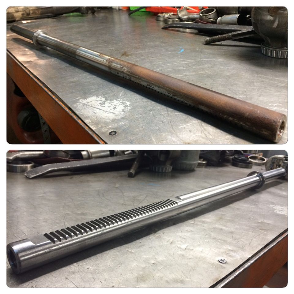 Рулевые тяги, пыльники и наконечники были в удовлетворительном состоянии, поэтому оставили их . Сама рулевая рейка полностью разбирается, моется / чистится, все сальники / резинки меняются на новые, в обязательном порядке выполняются токарные работы по обработке валов и изготовлению ремонтных втулок .
