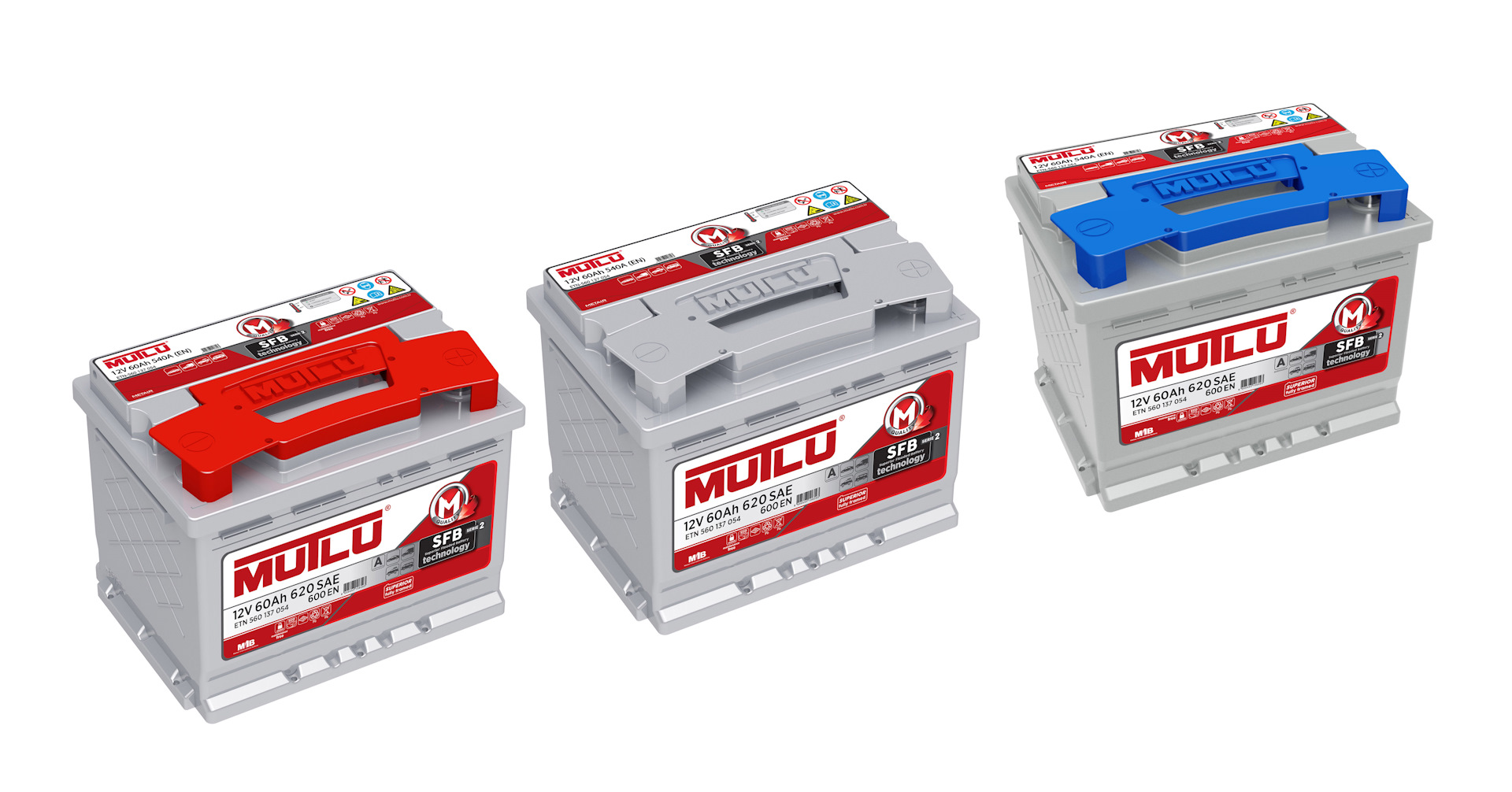 Актуальный ассортимент Mutlu для легковых автомобилей предлагает разнообразные типы аккумуляторных батарей, которые производятся с применением трех современных технологий: SFB (аккумуляторы с жидким электролитом нового поколения), EFB (аккумуляторы с жидким электролитом для автомобилей с функцией «старт-стоп») и AGM (технология абсорбирующего стекловолокна для автомобилей с функцией «старт-стоп» с высоким энергопотреблением).