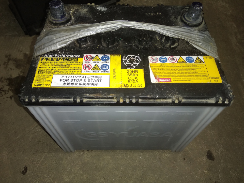 Штатный аккумулятор японской фирмы GS YUASA — в обычной продаже они встречаются и очень высокого качества (EFB серию японцы перекрасили в розовый цвет — чтоб не было подделок) — правда и ценник чуть выше чем корейские аналоги.