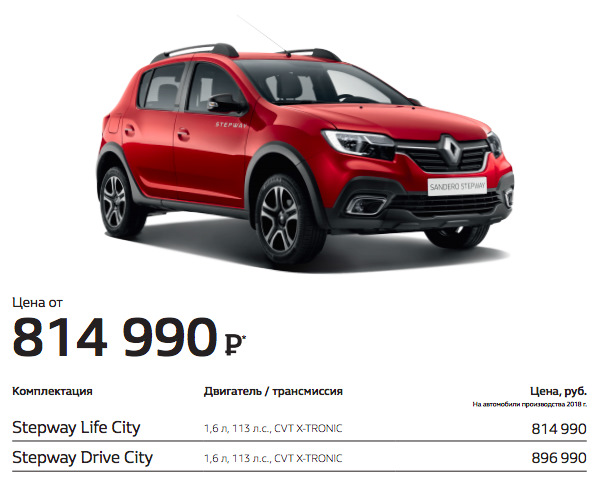 Пока вариатор серии CVT-7 и модели "DK0" (он же Jatco JF015e) начали устанавливать только на «вседорожных» Logan Stepway и Sandero Stepway City. Цена тоже выросла. Кросс-седан Renault Logan Stepway City предлагается по цене от 787 990 рублей, а Sandero Stepway City – от 814 990 рублей. Цены на обычные Logan Stepway и Sandero Stepway начинаются от 662 990 и 709 990 рублей соответственно. Цены с АКПП — от 752 990 и 779 990 рублей соответственно.
