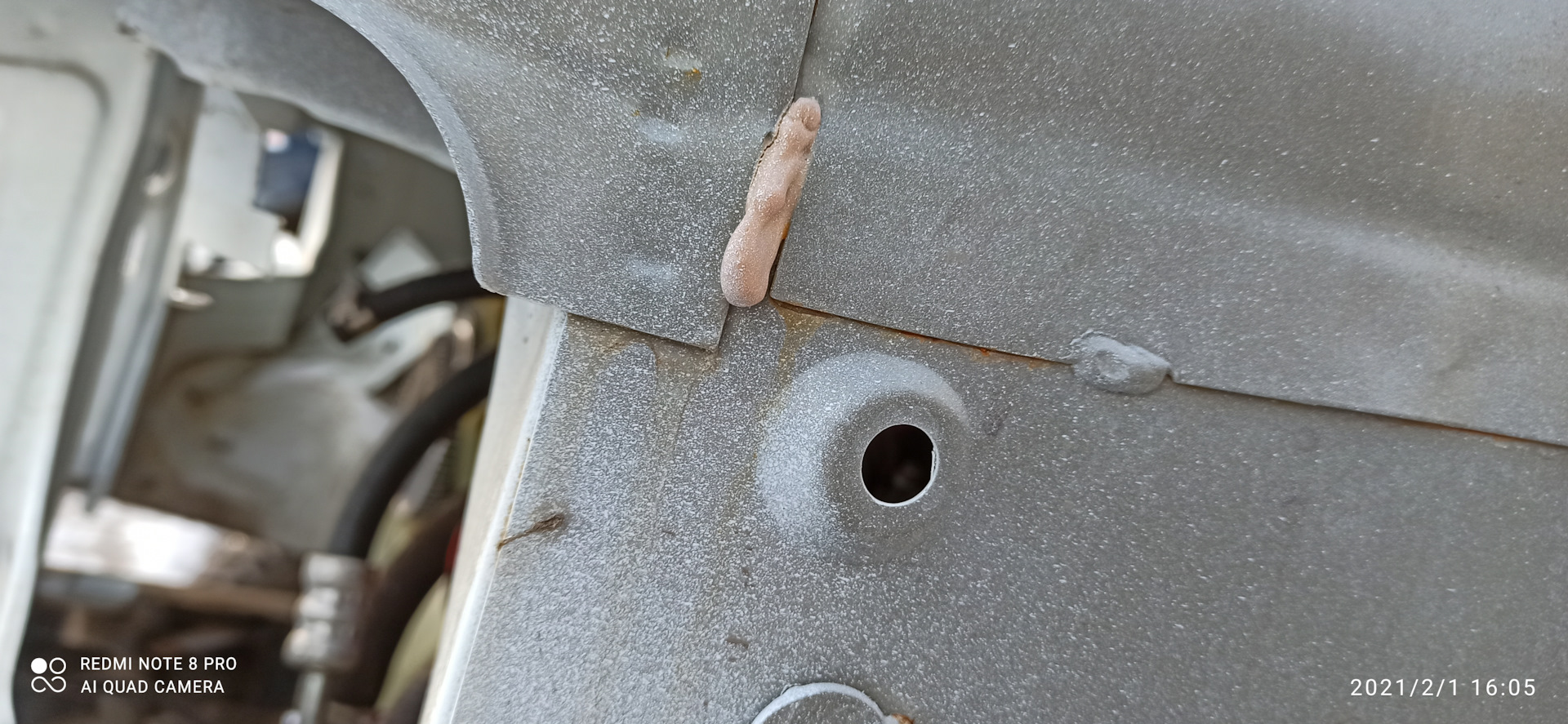 Чтобы избежать такой ситуации в будущем, мы добавили дополнительный процесс обработки, начали наносить мастику по периметру передней части крыла и добавили проставки из оцинкованных лент. Оцинкованный металл содержится в том числе и в усилителе верхней рамки радиатора — это должно предотвратить коррозию в районе замка капота.