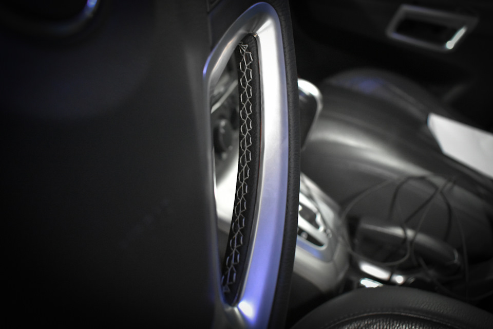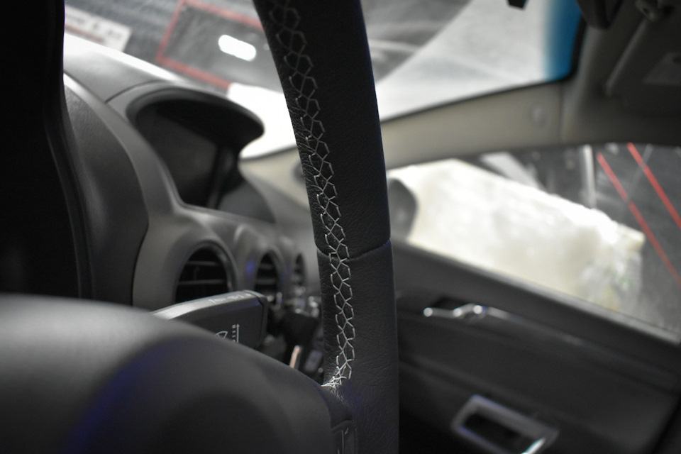 У сидения, в местах повышенной эксплуатации, была замена двух деталей на качественную экокожу и восстановлена боковая поддержка (внутренний наполнитель). Руль перетянут в натуральную автомобильную кожу Monza, поменяли заводской шов на мерседесовский.