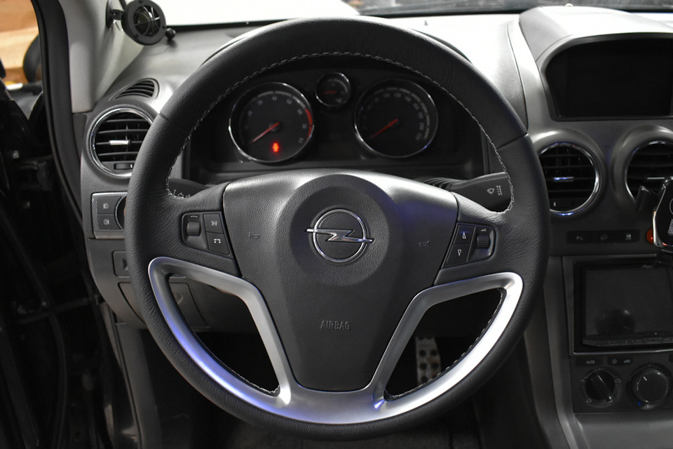 На фотографиях можете увидеть нашу работу по локальному восстановлению кресла и перетяжке руля Opel.