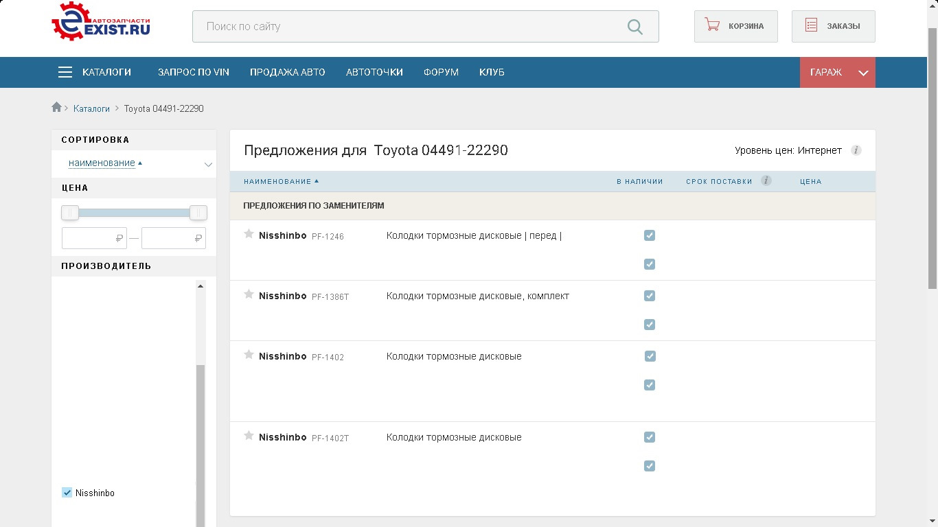 Тут все достаточно просто. Заходите в фирменный онлайн-каталог. Там создан удобный поиск по различным параметрам. Искать колодки можно по марке и модели авто или по номеру оригинальной запчасти. С функцией расширенного поиска можно задать определенные параметры: название тормозной системы, ось установки, год выпуска и т.д. Также возможен поиск по оригинальному номеру детали или по старому номеру Nisshinbo формата PF-ХХХХ.