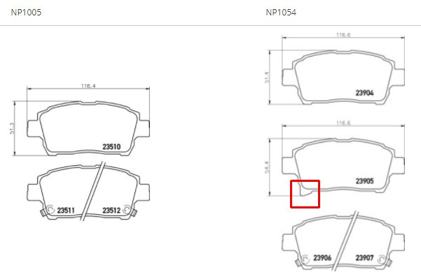 Здравствуйте. Подскажите чем отличаются колодки NP-1005 от NP-1054. И какие из них лучше поставить.