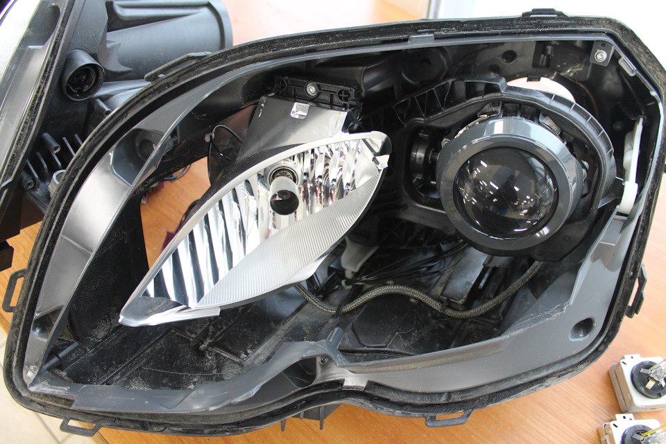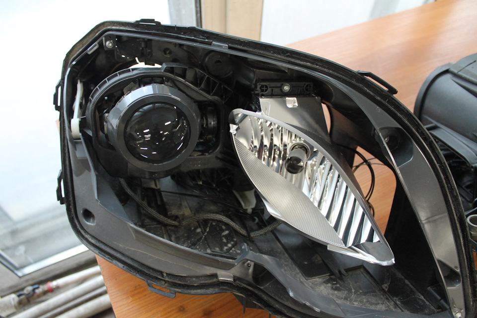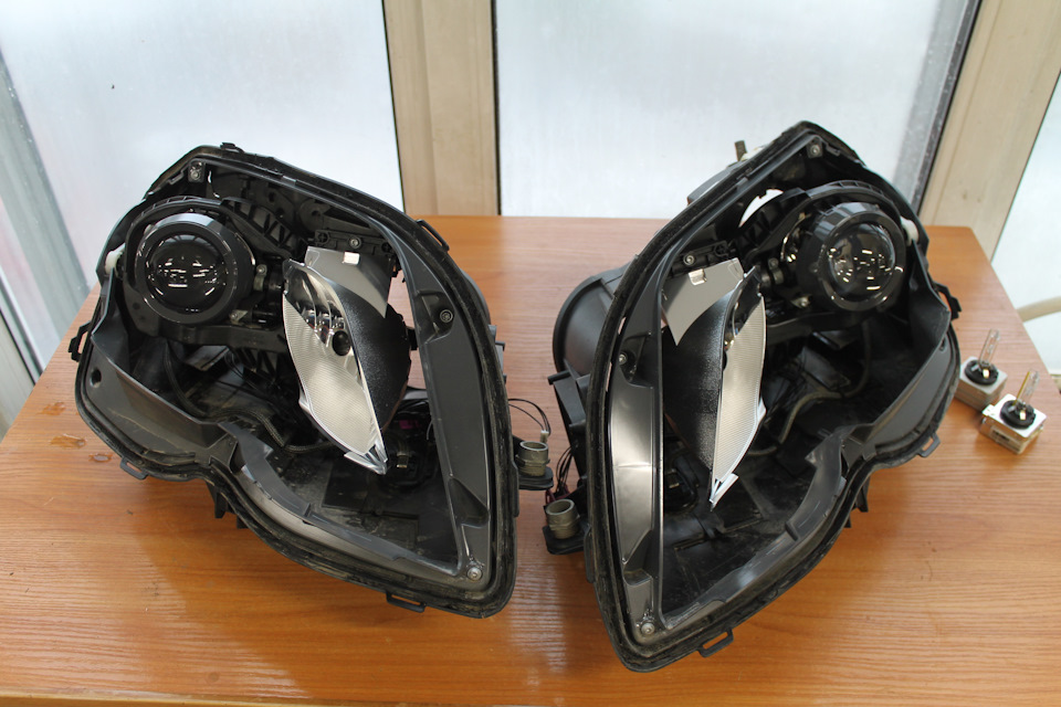 После приведения в порядок фар изнутри и ремонта электронных компонентов начинаем подготавливать фары к сборке.