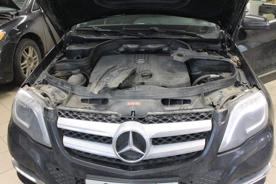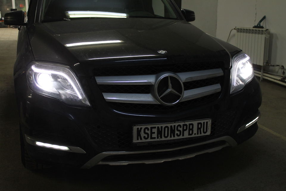 На этот раз автомобиль Mercedes-Benz GLK в кузове X204 рейсталинг приехал с одной неработающей ресницей (ДХО).