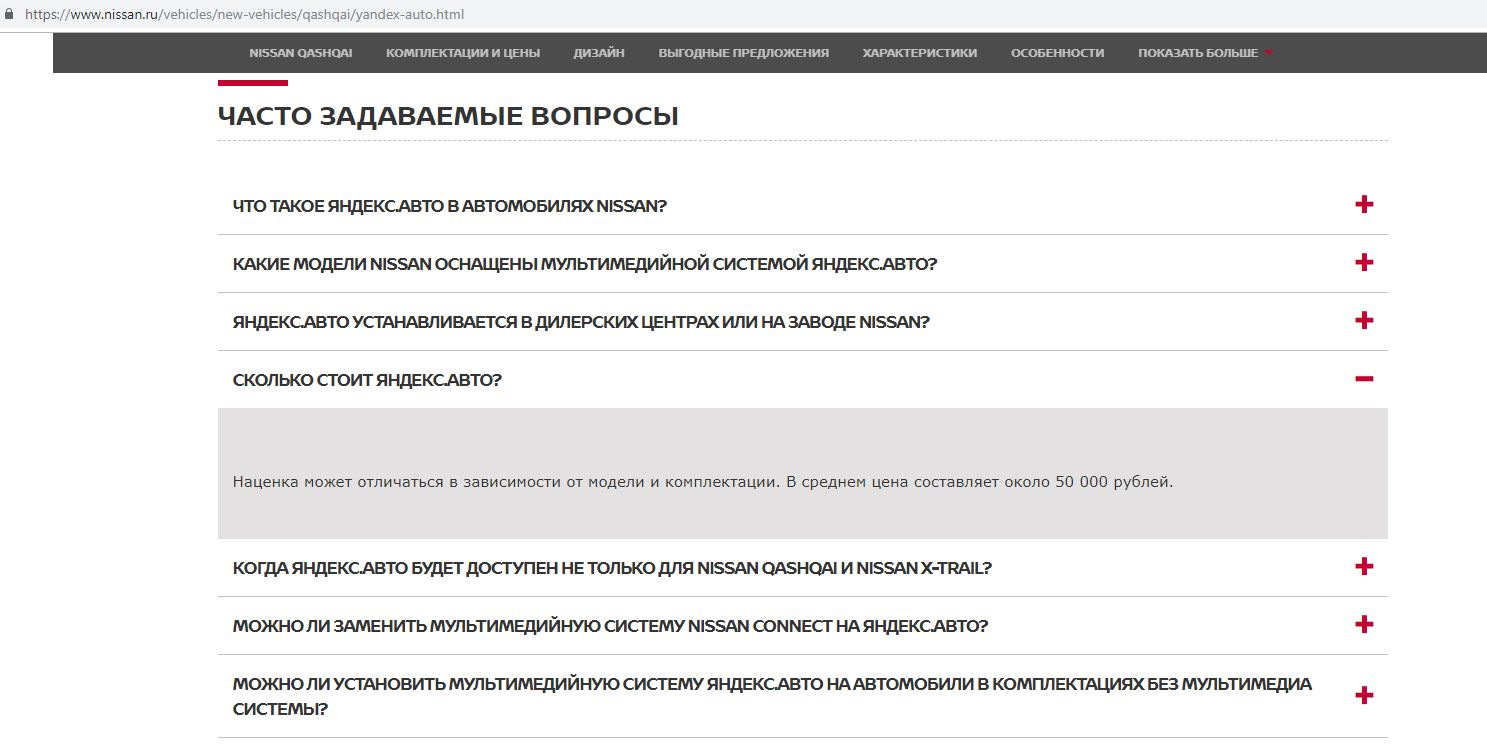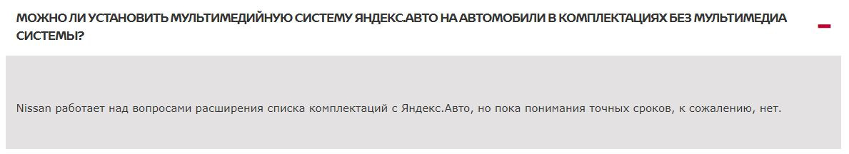 С 2018 года в автомобили Nissan X-Trail и Qashqai российской сборки начали штатно устанавливать мультимедийную систему Яндекс.Авто.