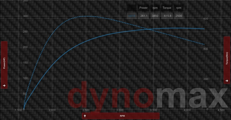 Причем, 260-265 л.с. получали при замерах на стоке на разных машинах, на разных стендах — и в Москве у коллег, и у нас в СПб. Похоже что 249 л.с. — это цифра для документов, чтобы не расстраивать владельца повышенным транспортным налогом. Кстати, в софте мы нашли карты лимитирования момента для разных мощностных версий. Но, судя по моментным характеристикам, в нашем софте это лимитирование не работало.