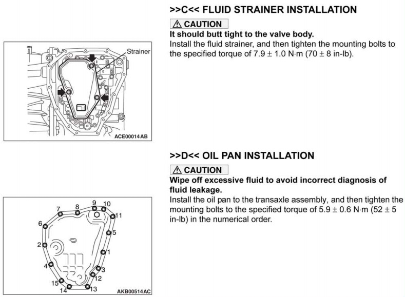 Очередность затяжки болтов (и сила затяжки болтов) при замене масла в вариаторе Jatco JF015e