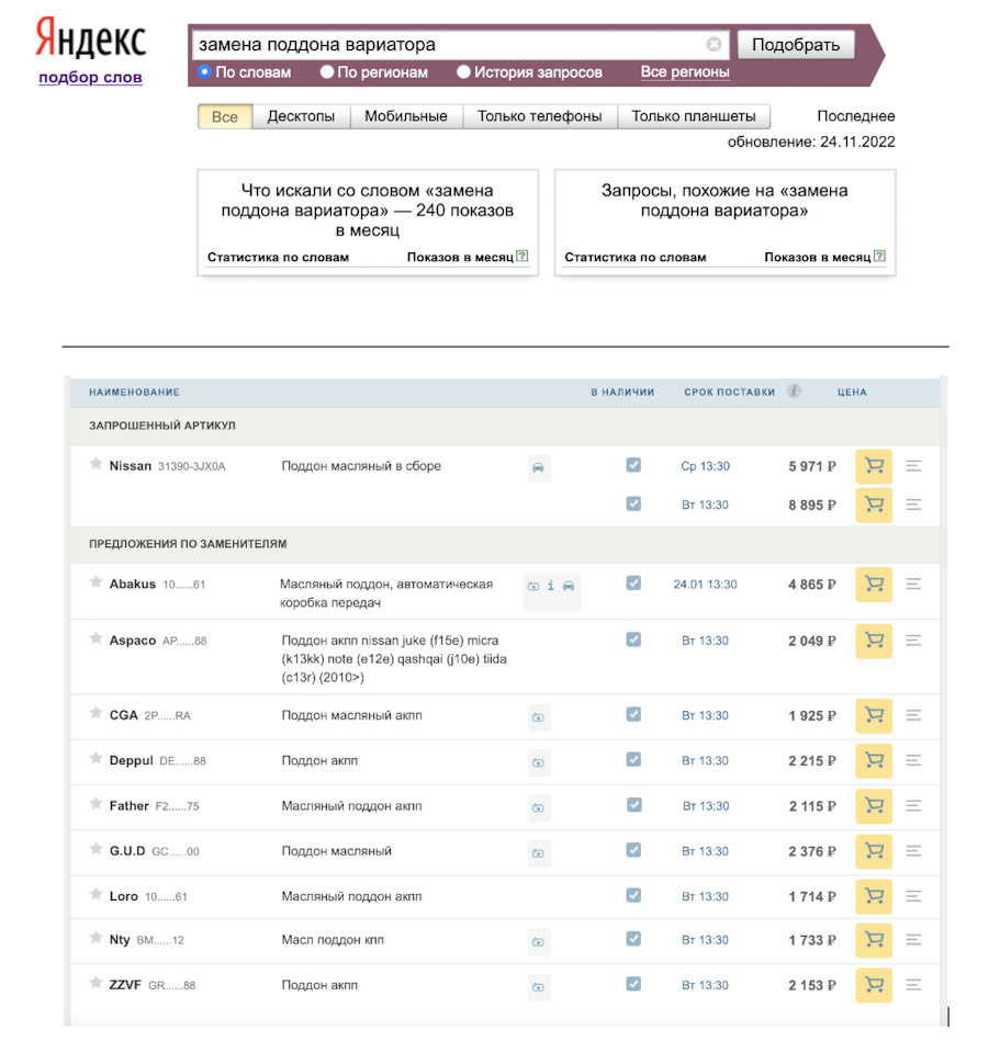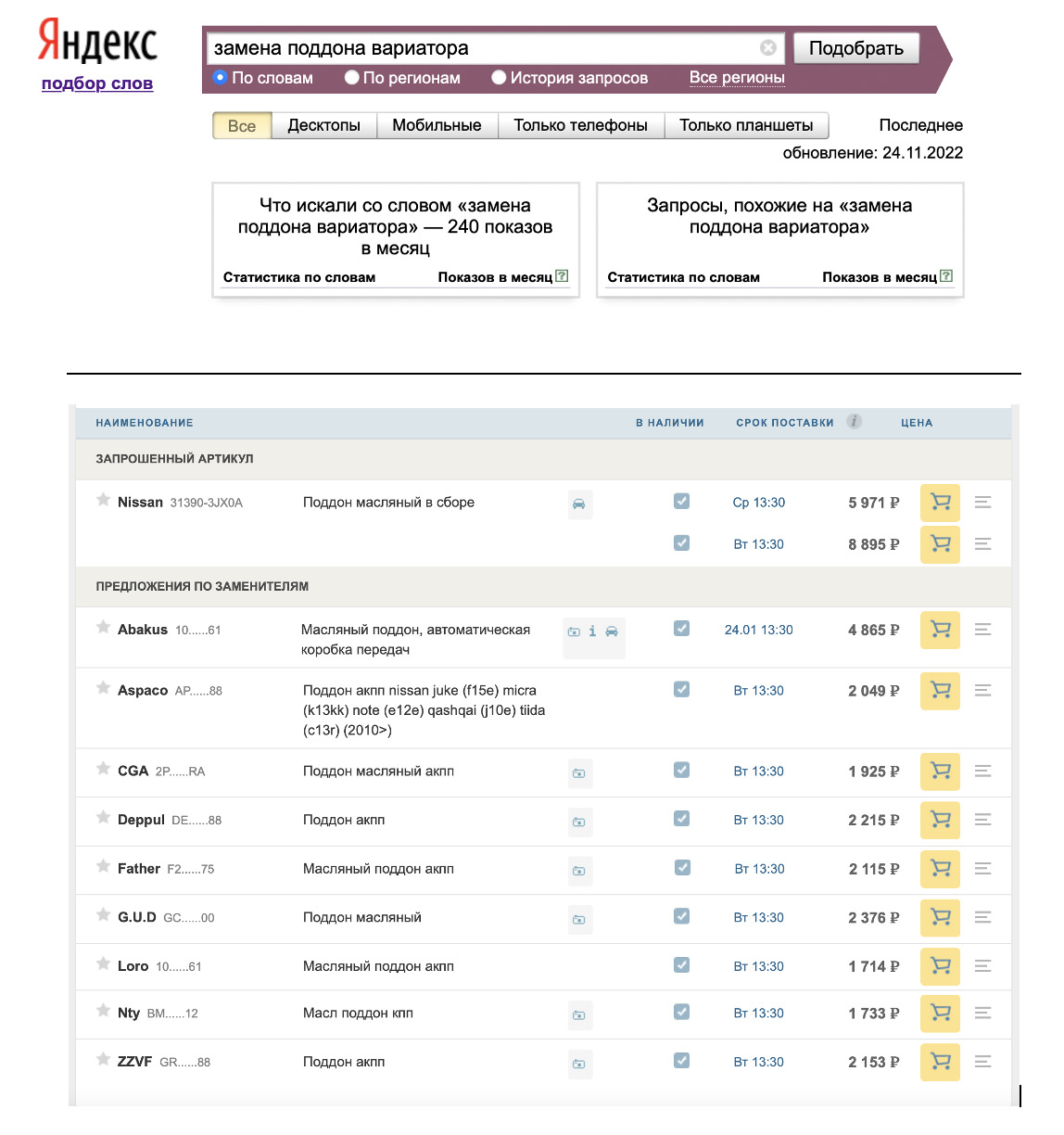 1) По статистике Яндекса (по их сервису "вордстат") ежемесячно около 240 человек в России ищет (при помощи поисковика Яндекса) "замену поддона вариатора". А в год это чуть менее 3000 человек… И это только в России. А ведь есть ещё и Гугл… )))