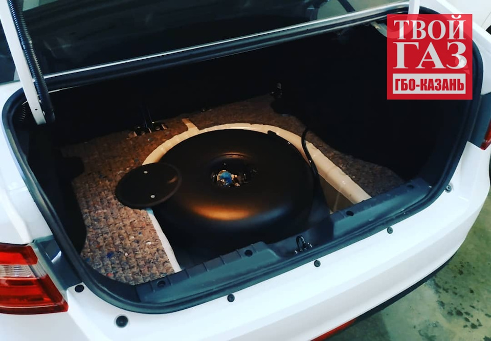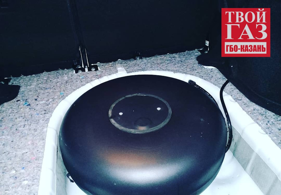 Установка газобаллонного оборудования на Lada Vesta, двигатель 4-цилиндровый, рядный, атмосферный, объем 1,6л . Установлено ГБО 4-го поколения DIGITRONIC MAXI-2 тороидальный баллон 54 л расположен на месте запасного колеса, заправочное устройство выведено в багажник