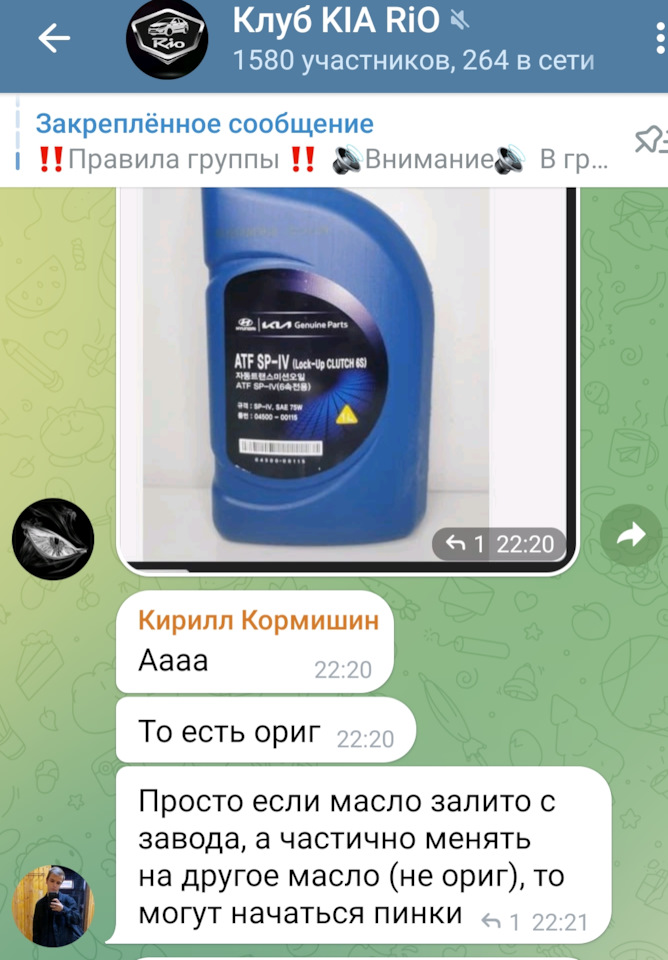 Здравствуйте! Киа Рио 3 с коробкой 4 ст А4CF1, полная замена была сделана на 65 т, на 130т решил сделать частичную замену без замены фильтра, залил масло ZIC Multi с допуском ATF SP3 . Слил 3,8 литра, ( масло черное но без запаха и не сильно густое ) залил, выставил уровень. Вначале все было нормально, расход упал, машина поехала бодрее но после 1000 пробега появился небольшой рывок на переключении при скорости 50 км /ч при аккуратном разгоне, при резком ускорении рывков и толчков нет . Но авто едет нормально тупее не стало что может быть причиной ?