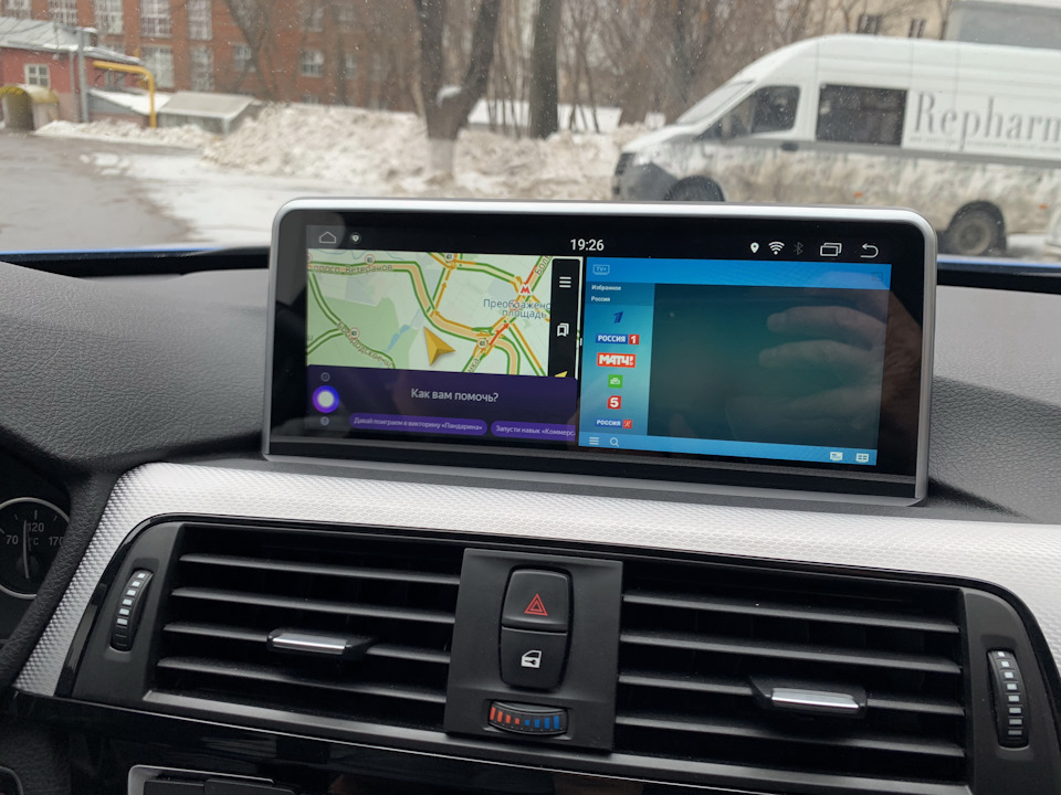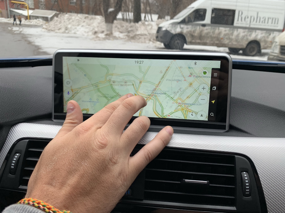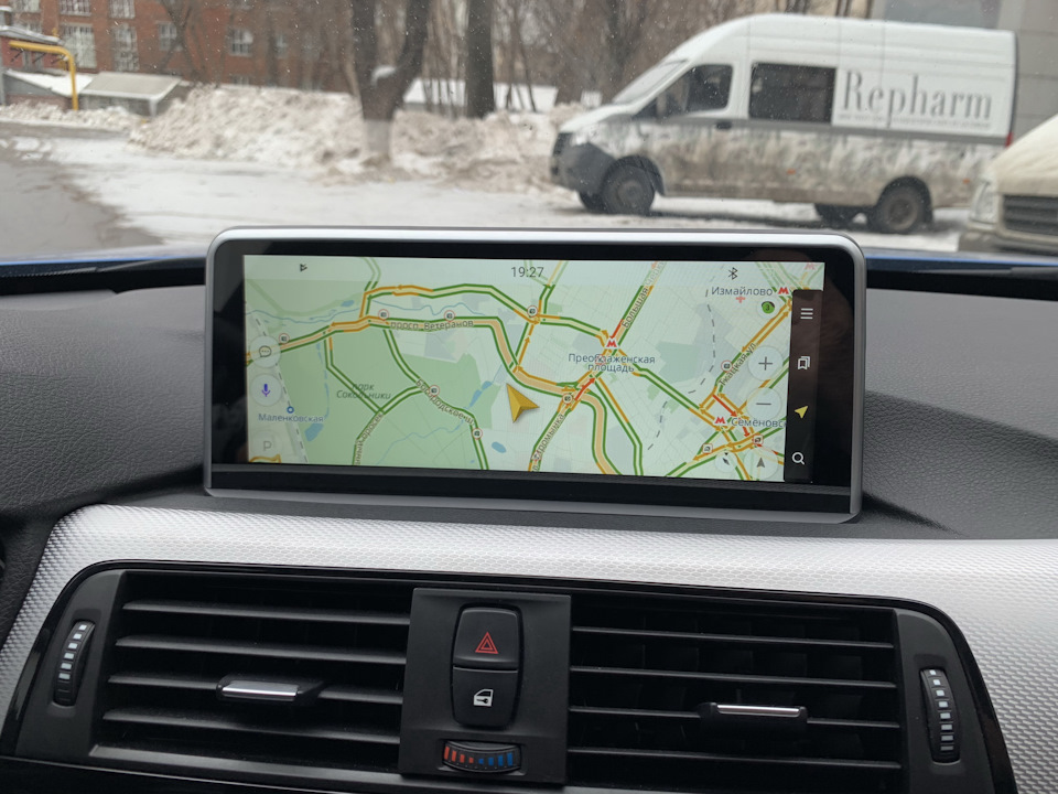 после установки появляется и большой монитор, и полноценная навигационно-мультимедийная система в стиле BMW NBT EVO iD6: